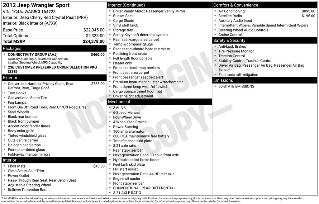 PRE-OWNED 2012 JEEP WRANGLER SPORT 4WD