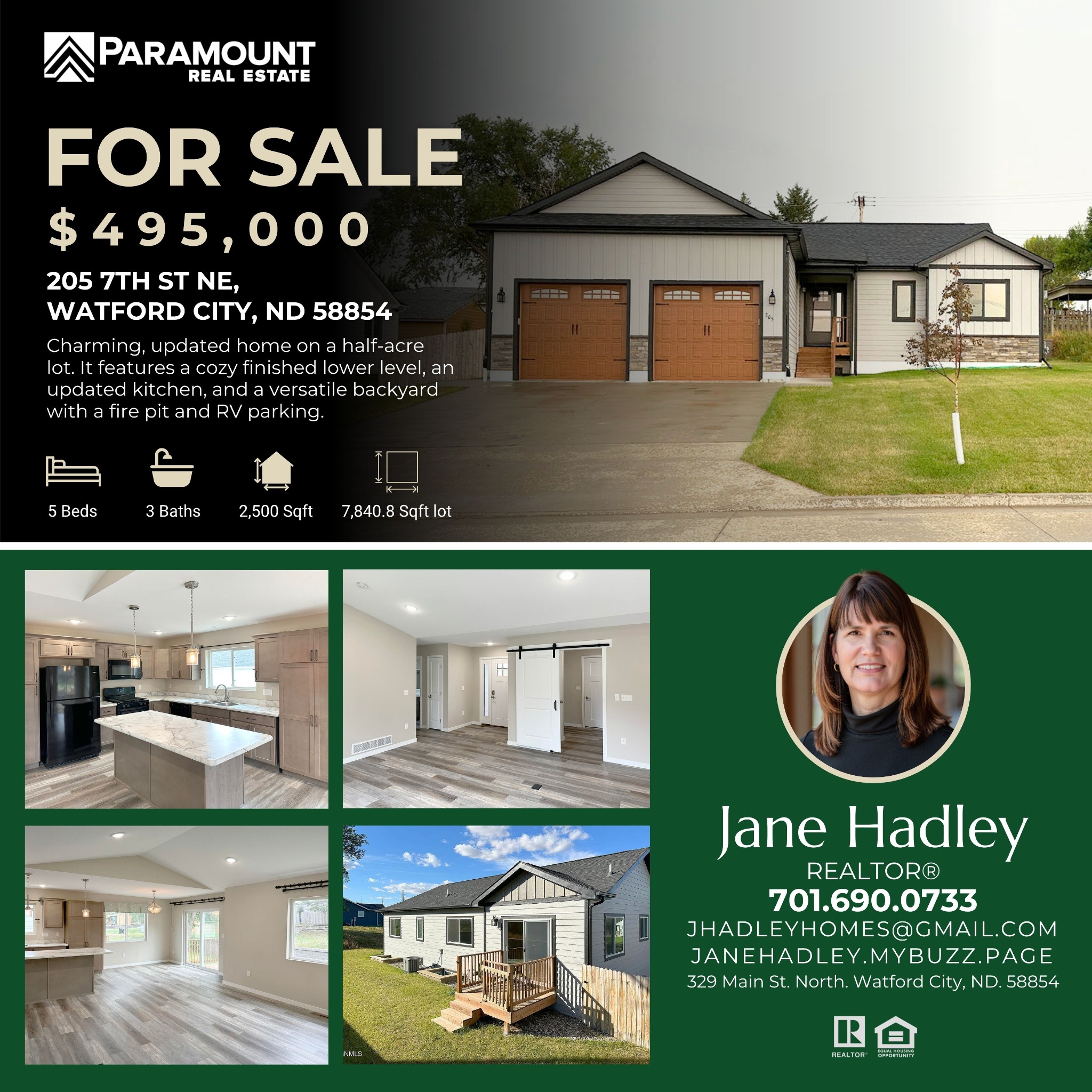 BEAUTIFUL 5 BEDROOM, 3 BATH 2020 HOME FOR SALE!. Must see this modern home in Veeder Subdivision off North Main St in Watford City. Main floor includes light and bright open concept living, dining,...