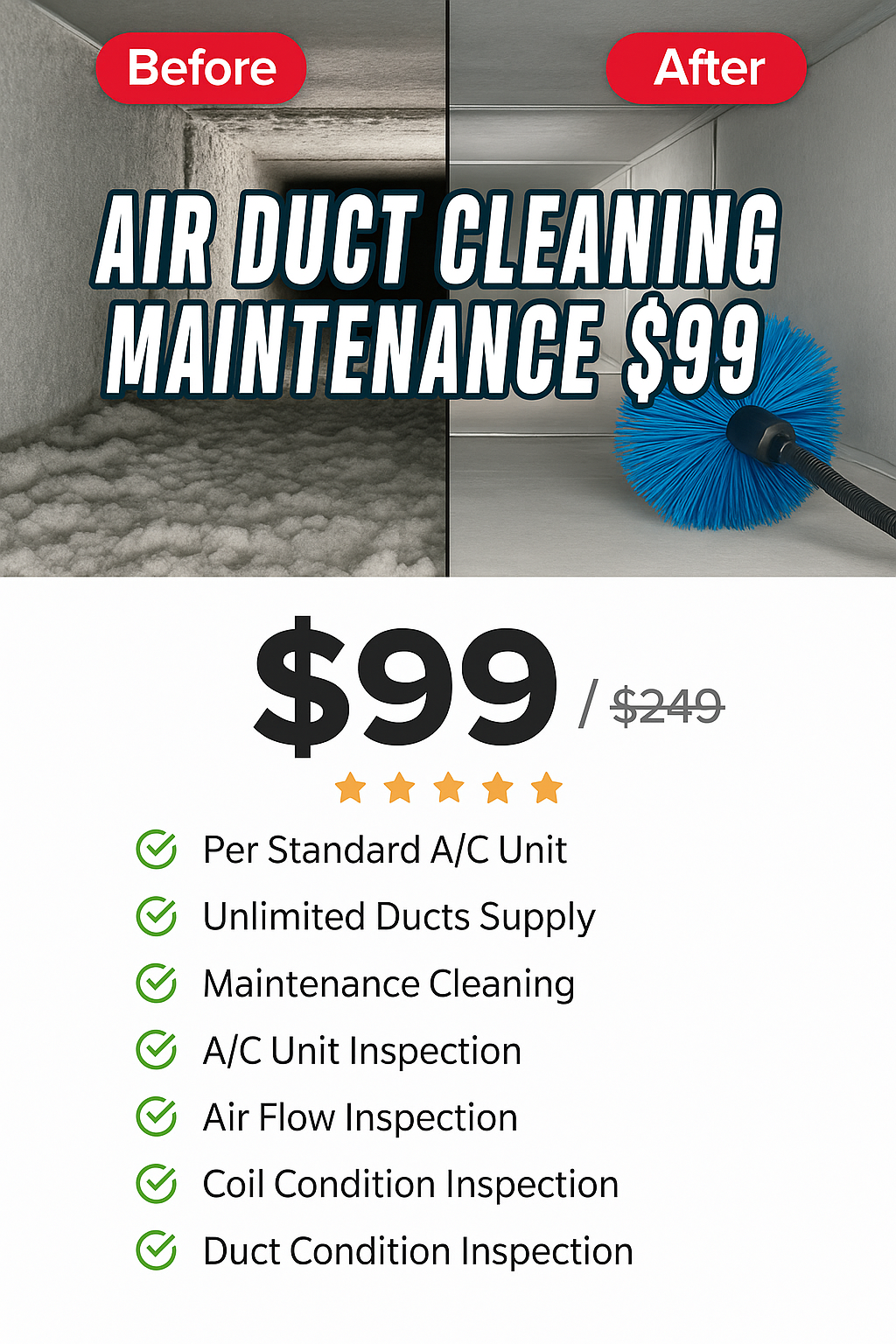 Get Cleaner Air Today! 🌀 Unlimited supply vents cleaned for just $99, no hidden fees. Fast scheduling & done in one visit - perfect for busy families. Breathe better today and save time tomorrow!