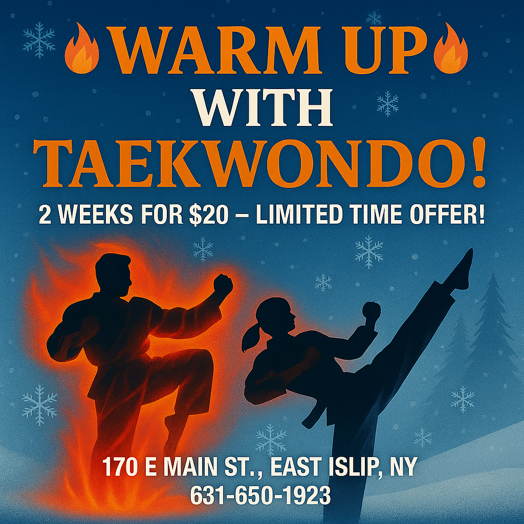 🔥 Ready to kick the cold away? Build strength, confidence, and focus - one kick at a time. 🌟 Try 2 WEEKS for just $20! 🥋 Master Jang’s Black Belt Taekwondo 📍 170 E Main St, East Islip ☎️...