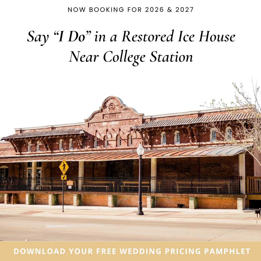 Couples Near College Station this is your sign to get married at Ice House on Main! πŸ’– Step inside Bryan’s largest historic wedding venue with exposed brick, soaring wood beams, and three gorgeous...