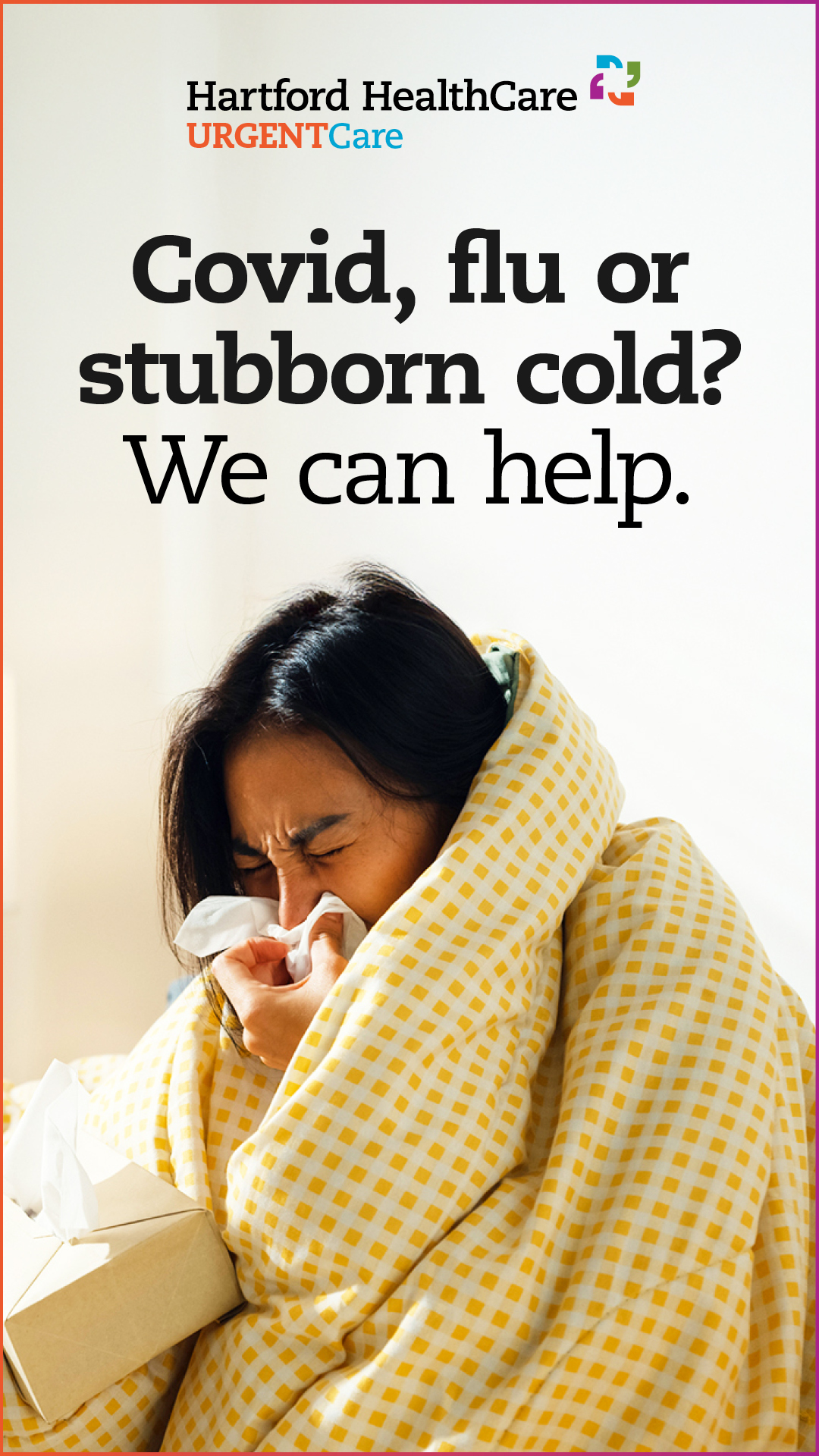 Don't wait to feel better. Walk in for cold, flu, and Covid care - right when you need it.