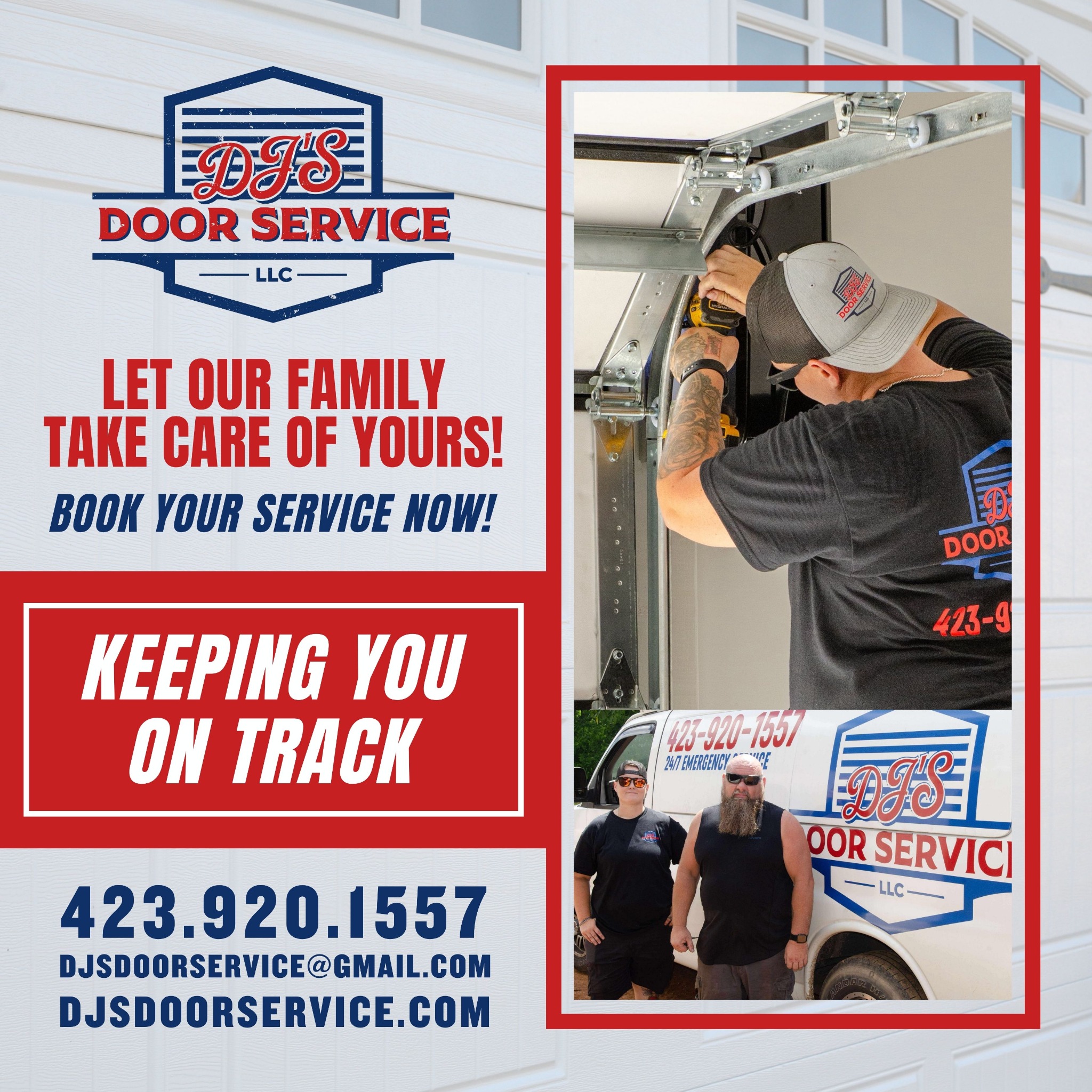 Springs, openers, installations. We handle it all! Let our family take care of yours and book your service with us now! Keeping you on track one door at a time!