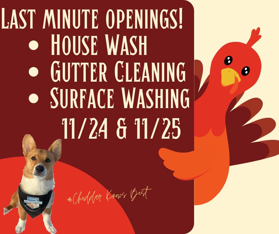 We have a few slots left for last minute services before Thanksgiving! 🦃 Let us spruce up the exterior of your home before guests arrive. Available services include: - House Wash - Gutter...