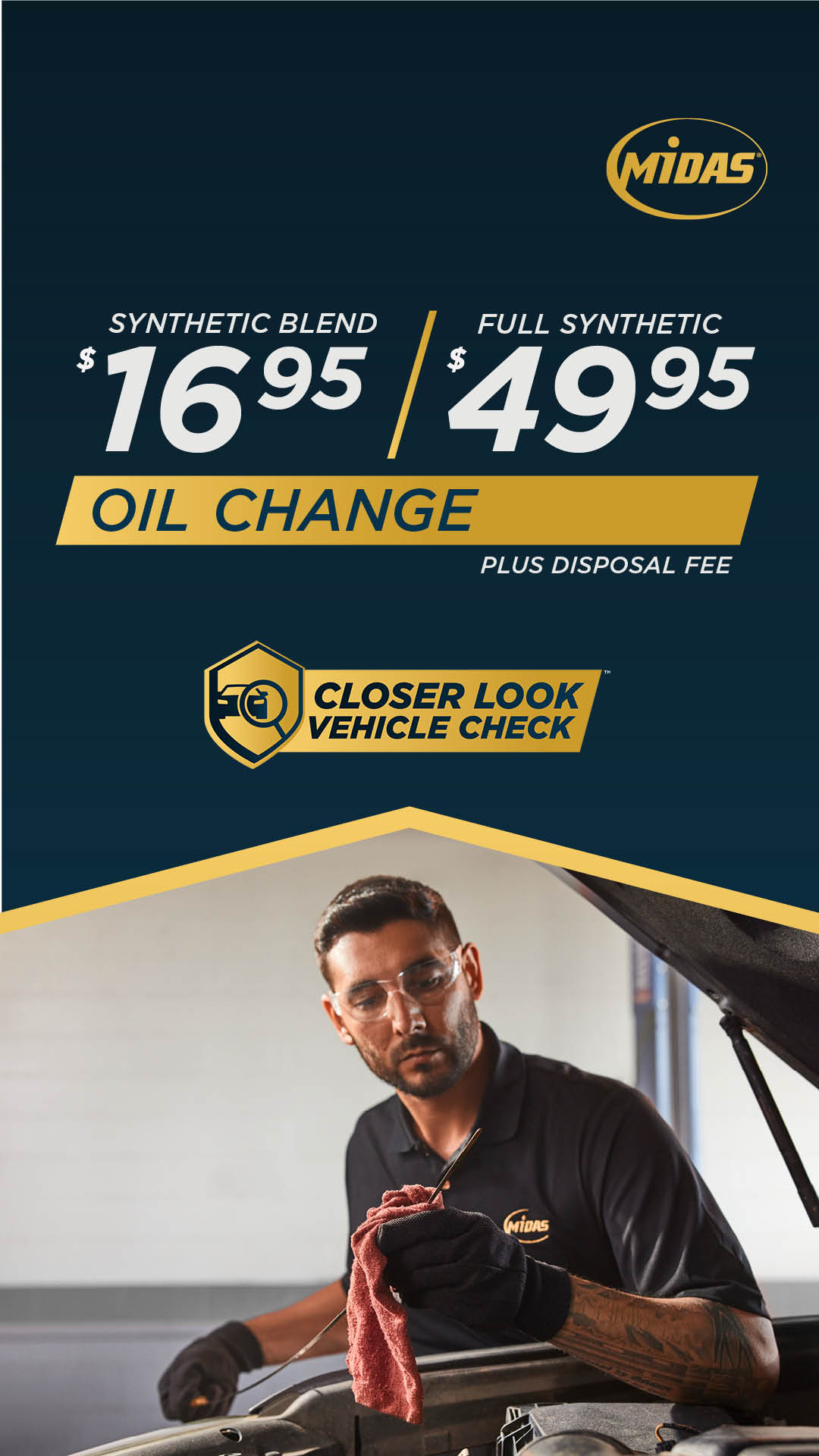 Visit your new local Midas for a $16.95 Synthetic Blend Oil Change Grand Opening Special.