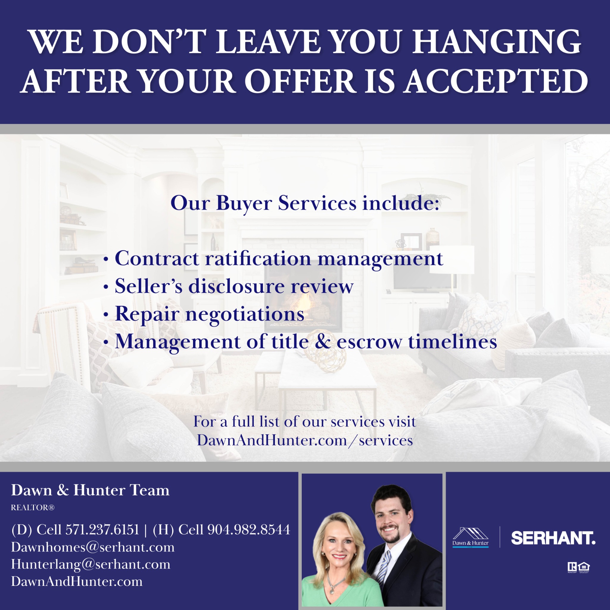 Expert guidance every step of the way. Its Closing Time DM or Call us at (D) Cell (571) 237-6151 (H) Cell (904) 982-8544 For a full list of our services visit https://dawnandhunter.com/services