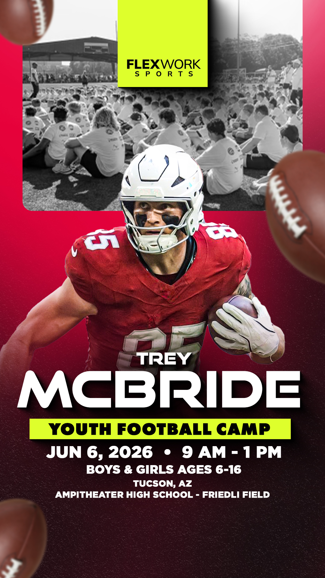 Excited to announce Arizona tight end Trey McBride will be in Tucson to host a Youth Football Camp! The camp is for boys & girls ages 6-16 and will take place on Saturday, June 6th at Ampitheater...