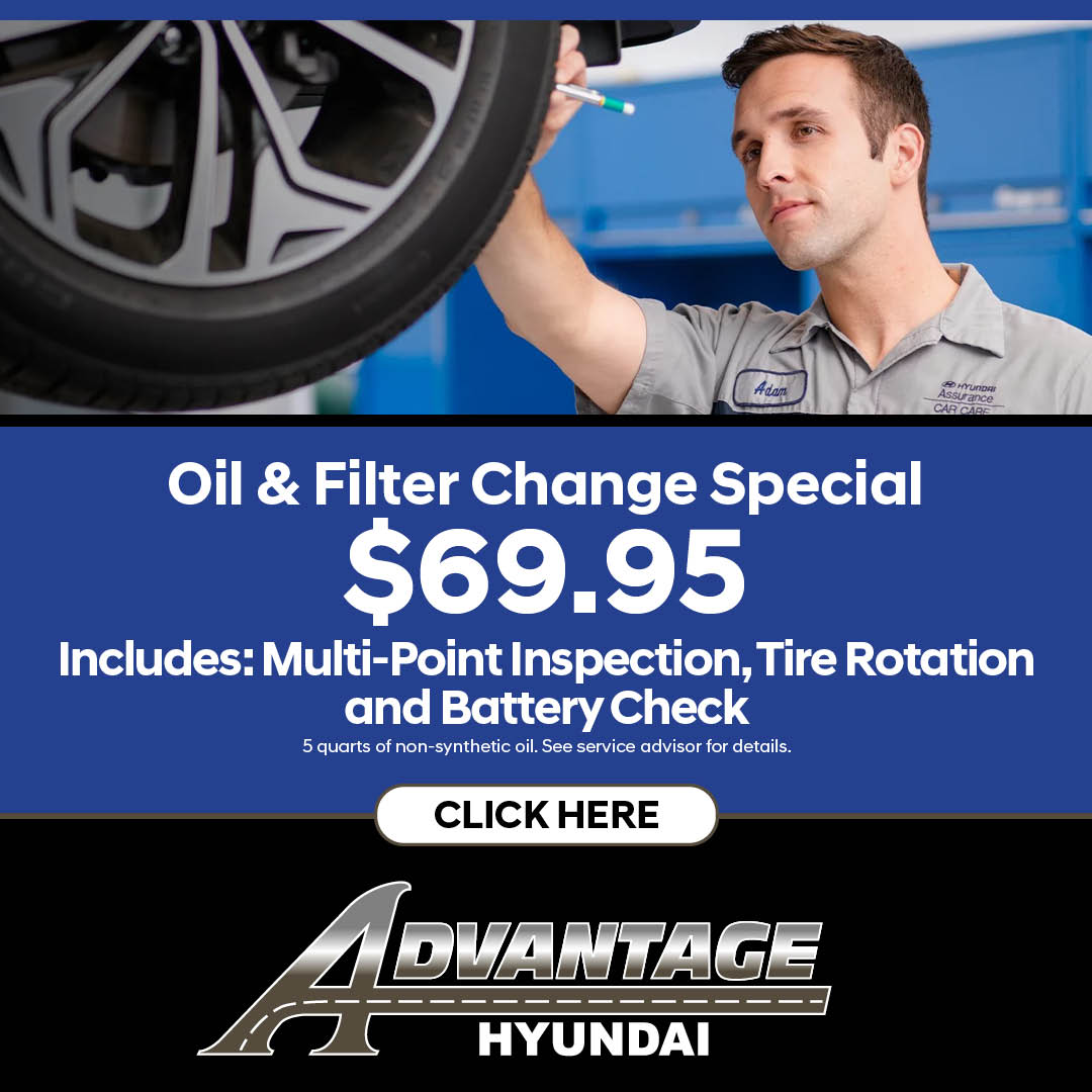 🚗 Hyundai Owners—This One’s for You! 🚗 Exclusive Oil Change Deal at Advantage Hyundai! 🛠️ Oil & Filter Change Special – Just $69.95! Keep your Hyundai running smoothly with expert care from your...