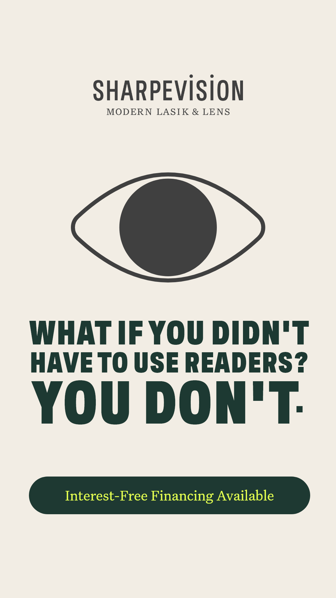 π Tired of readers? Discover Refractive Lens Exchange (RLE) today! At SHARPEVISION, we provide expert care and guidance to see if RLE is right for you.