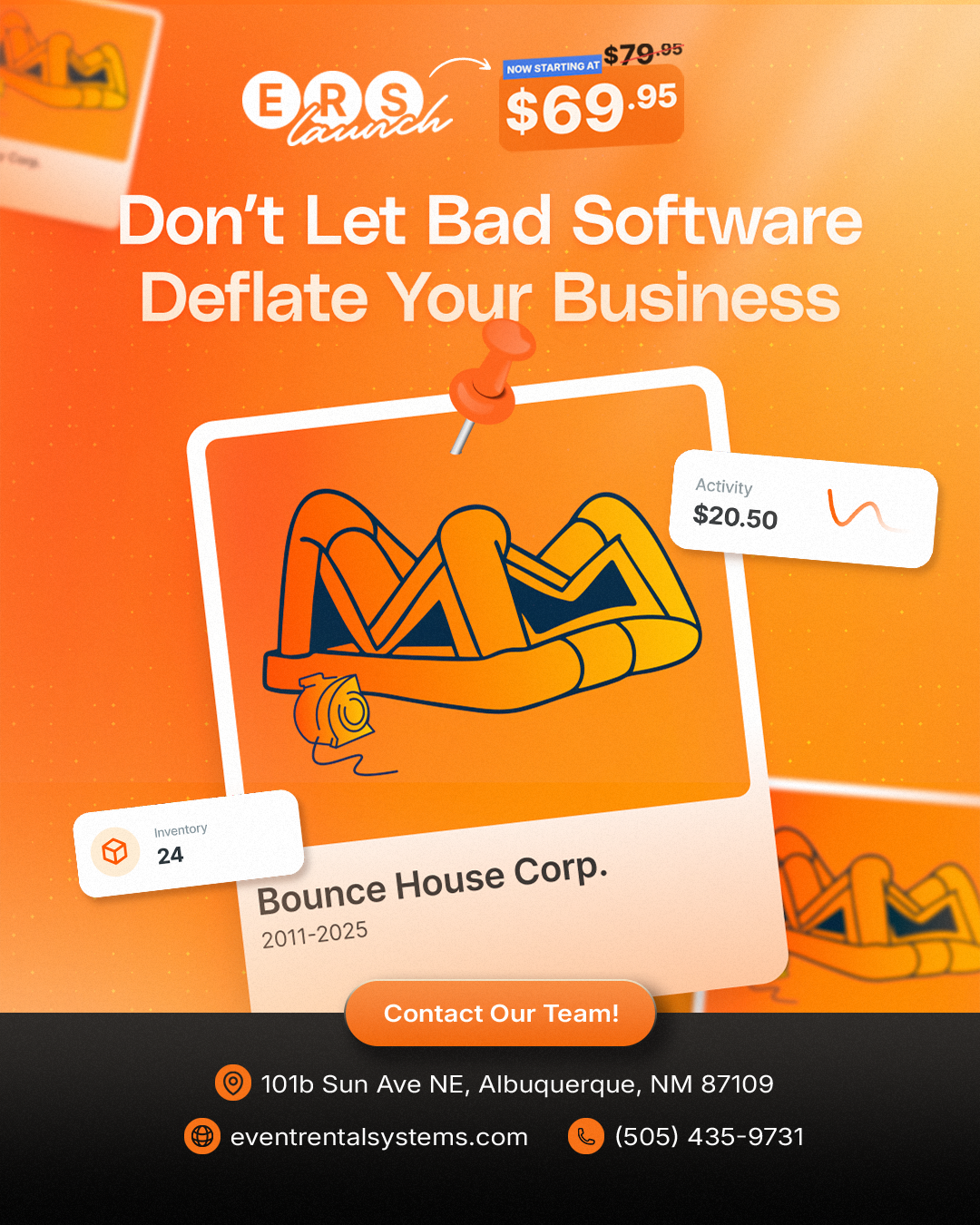 Don't Let Bad Software Deflate Your Business. 🚀 ERS puts your party rental business on autopilot. Customers book online 24/7, routes build themselves, invoices send automatically, and your KPI...