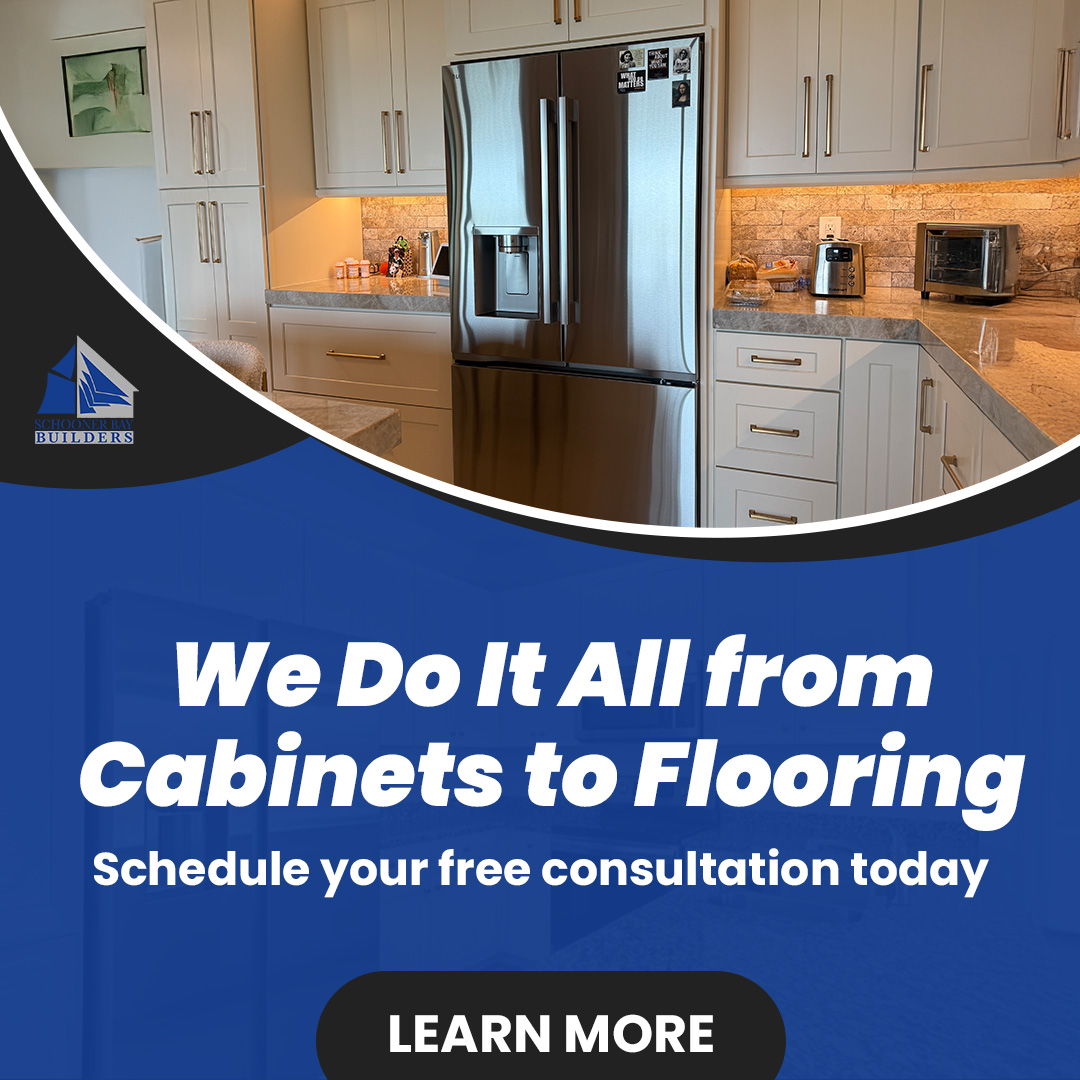 You’ve been thinking about this kitchen remodel for a while now. You’re not just replacing a faucet — you want everything done right. Cabinets, counters, flooring… the whole thing. Schooner Bay...