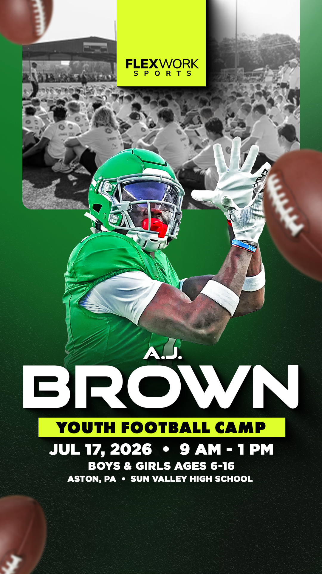 Excited to announce Philly wide receiver AJ Brown will be in Aston to host a Youth Football Camp! The camp is for athletes ages 6-16 and will take place on Friday, July 17th at Sun Valley High...