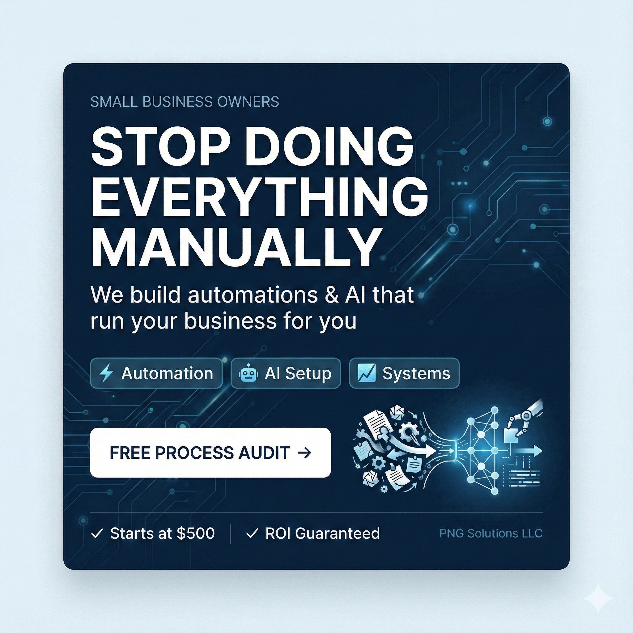 Spending 10+ hours a week on tasks that should take 2? You didn't start your business to drown in busywork. We build automations & AI tools that handle it for you. 🎯 Free 15-min Process Audit —...