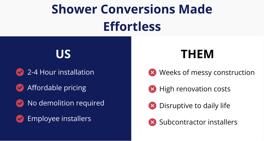 Everyone will tell you that you need to take out your old tub to get a new shower. We wonโ€™t. Instead, weโ€™ll show you how CleanCut transforms the tub you already have. ๐Ÿ‘‡ โœ… Convert your existing tub...