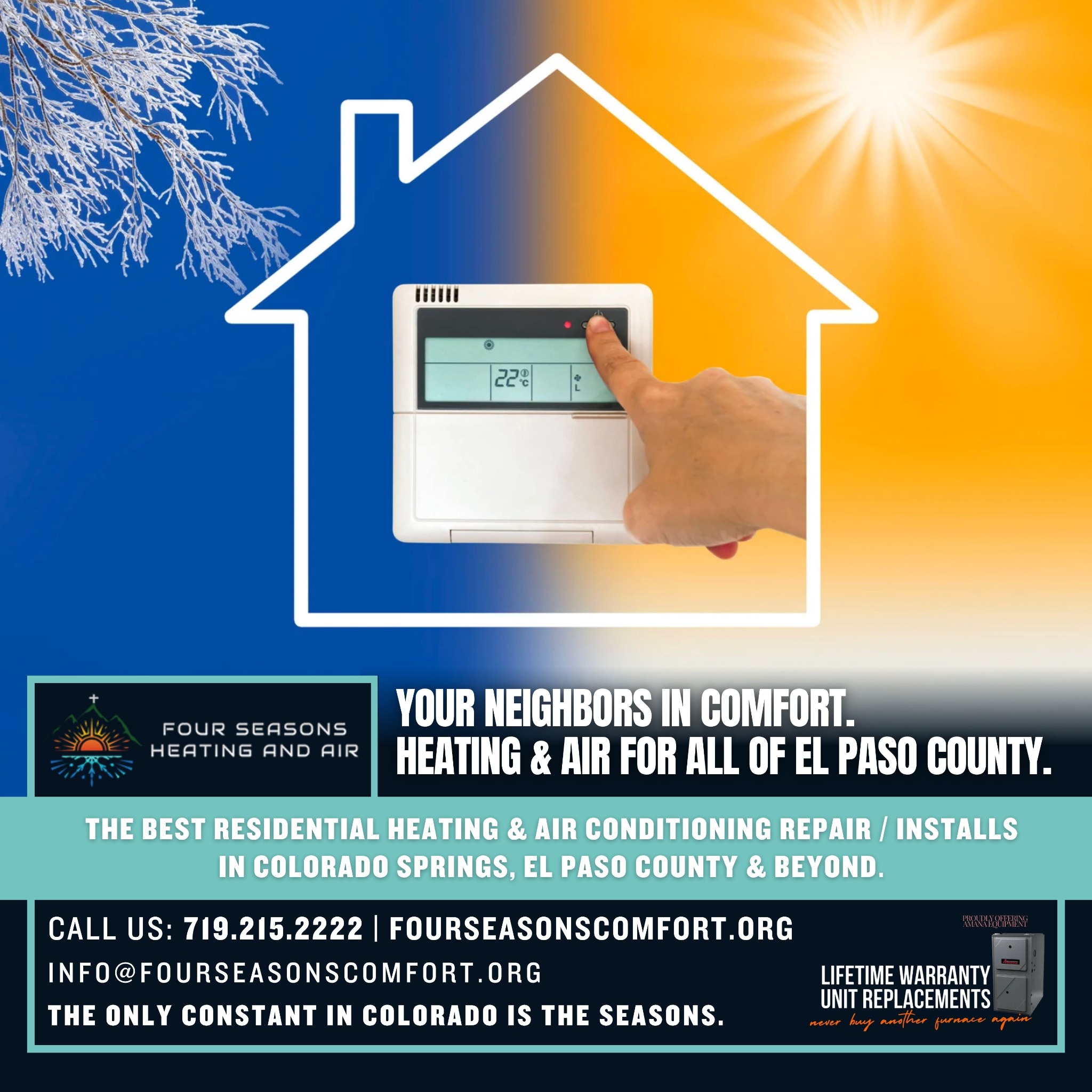 π₯βοΈ Your Neighbors in Comfort. At Four Seasons Heating & Air, weβre proud to serve Colorado Springs and all of El Paso County with trusted, local HVAC service. Expert installs. Reliable repairs....