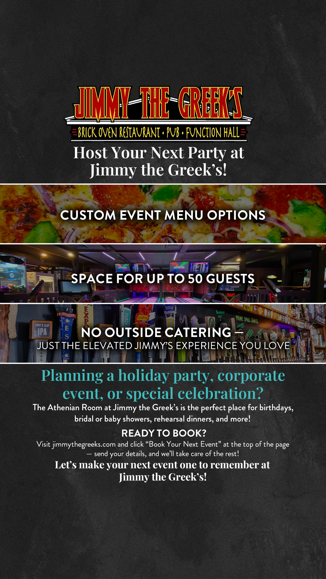 Looking for a unique venue for your next meeting, team outing, or company celebration? π₯ The Athenian Room at Jimmy the Greekβs offers great food, flexible menu options, and space for up to 50...