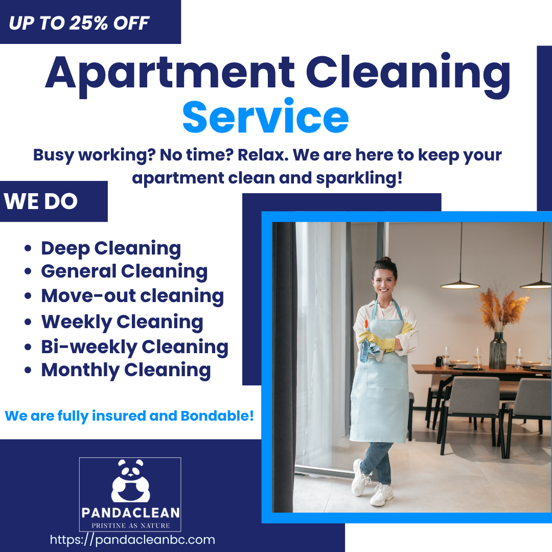 Apartment cleaning with up to 25% off! weekly, bi-weekly and monthly cleaning with more attractive deals! Our services are fully insured and bondable against damage, theft or loss!