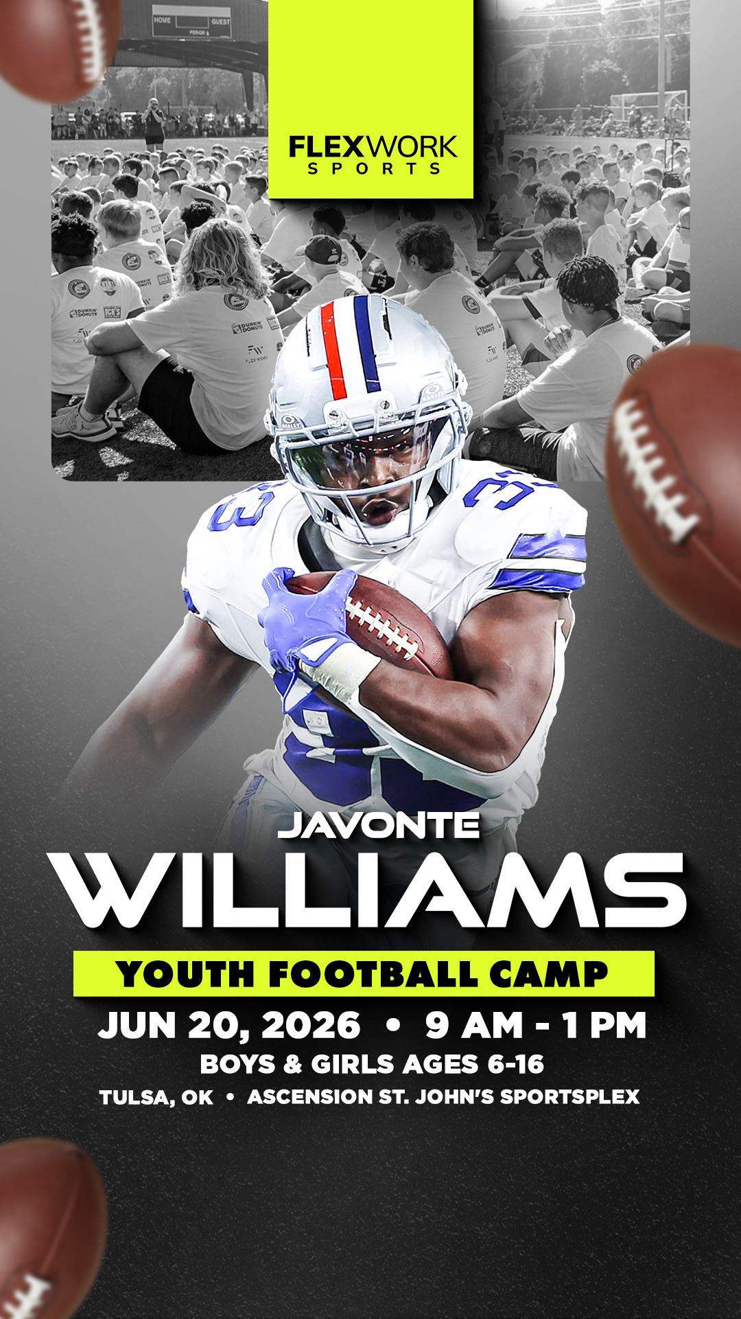 Excited to announce Dallas running back Javonte Williams will be in Tulsa to host a Youth Football Camp! The camp is for boys & girls ages 6-16 and will take place on Saturday, June 20th at Ascension...
