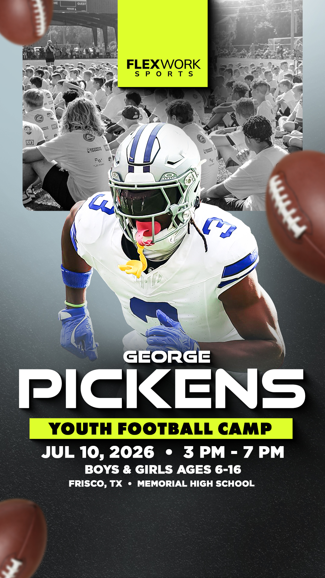 Excited to announce George Pickens will be in Frisco to host a youth football camp! Athletes ages 6-16 will šŸˆ Learn skills from Pickens šŸ“ø Get a pic with the star šŸ‘• Get swag Join us on Friday,...