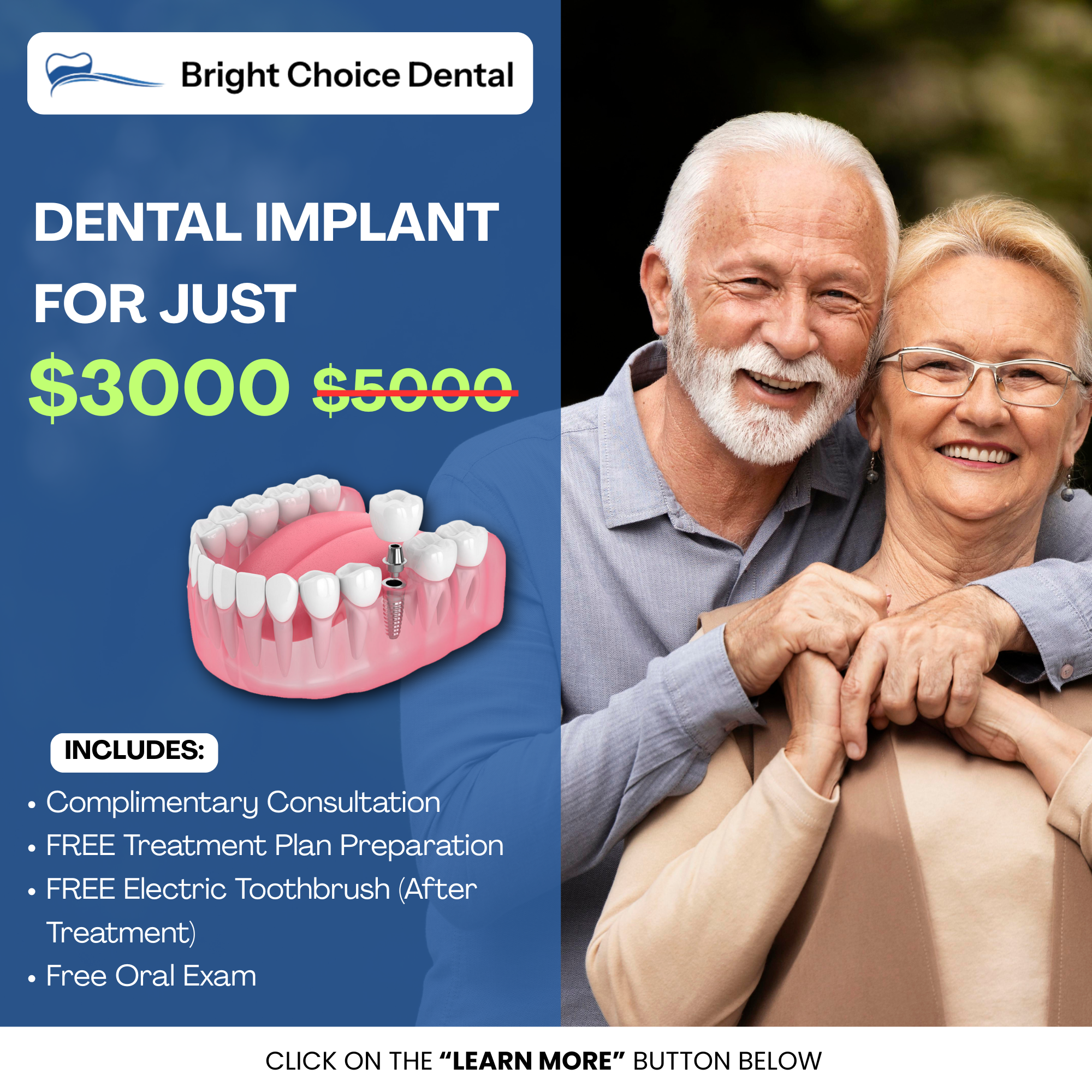 Implant + Abutment + Crown for just $2,499