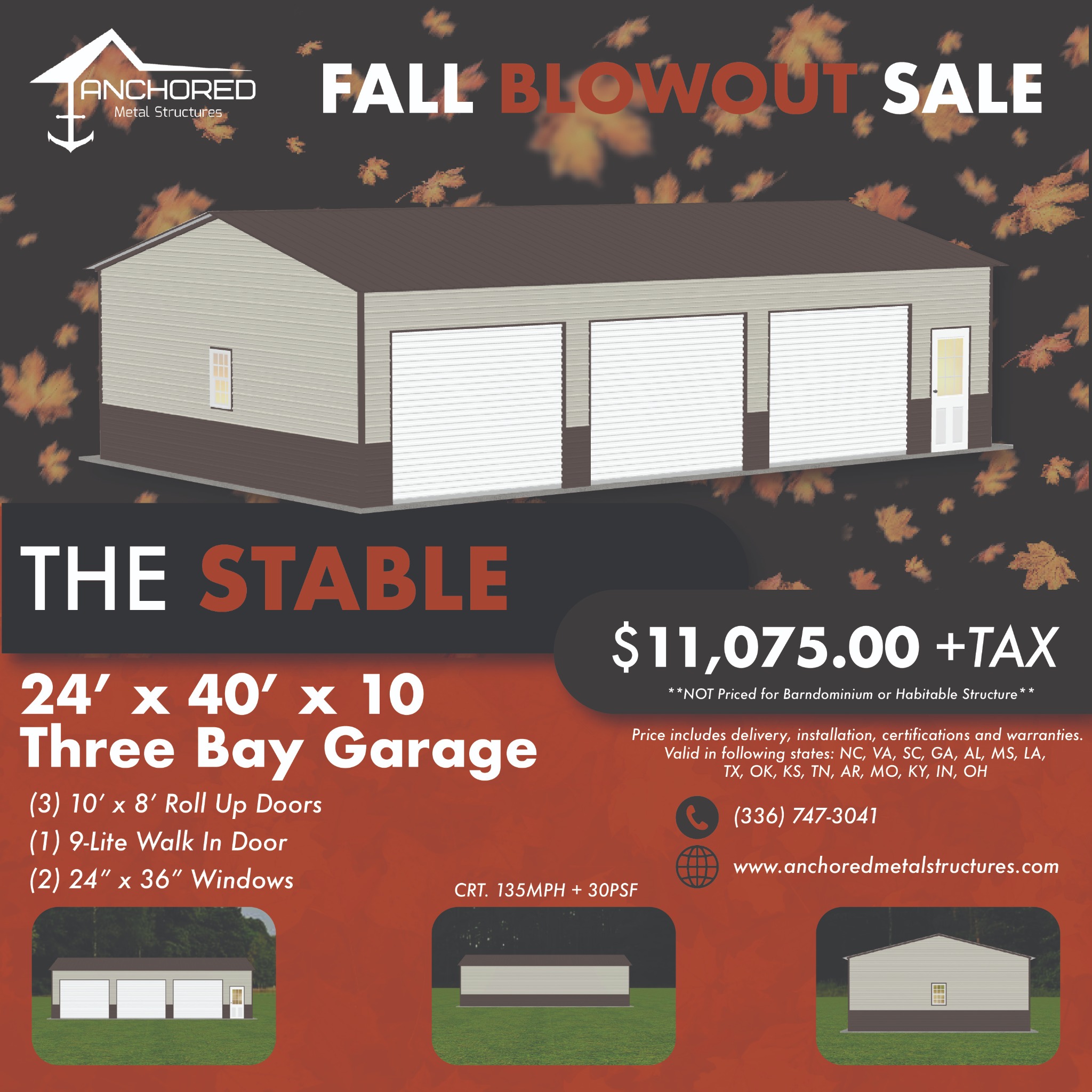 The Stable 24x40x10 3 Bay Garage
