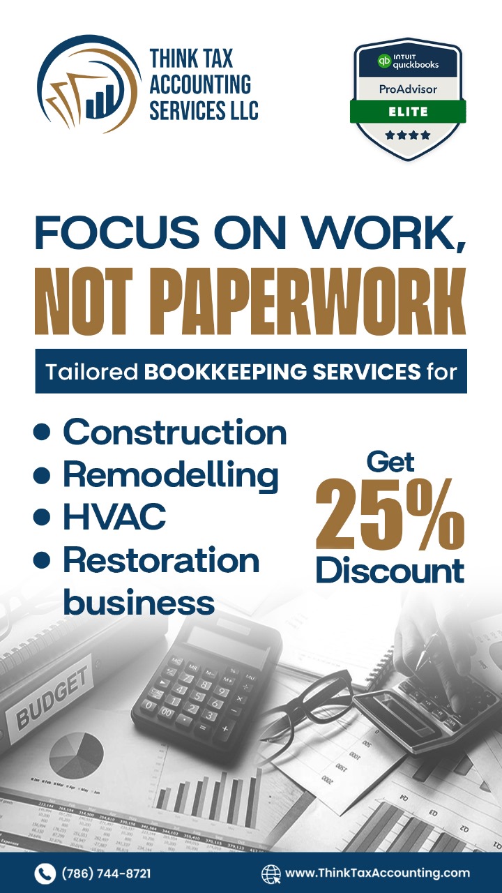 You handle the work that keeps homes running — let us handle your books. We provide expert bookkeeping for construction, HVAC, plumbing, and restoration businesses across Florida. Your projects...