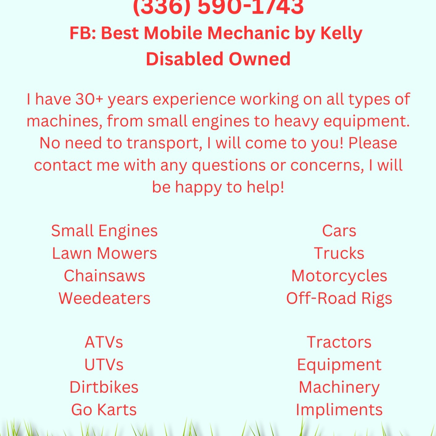 It is important to keep our machines in good shape with maintenance, service, or repairs. My name is Kelly, I have over 30 years of repairs and tune-ups looking to get you going. I am located in...