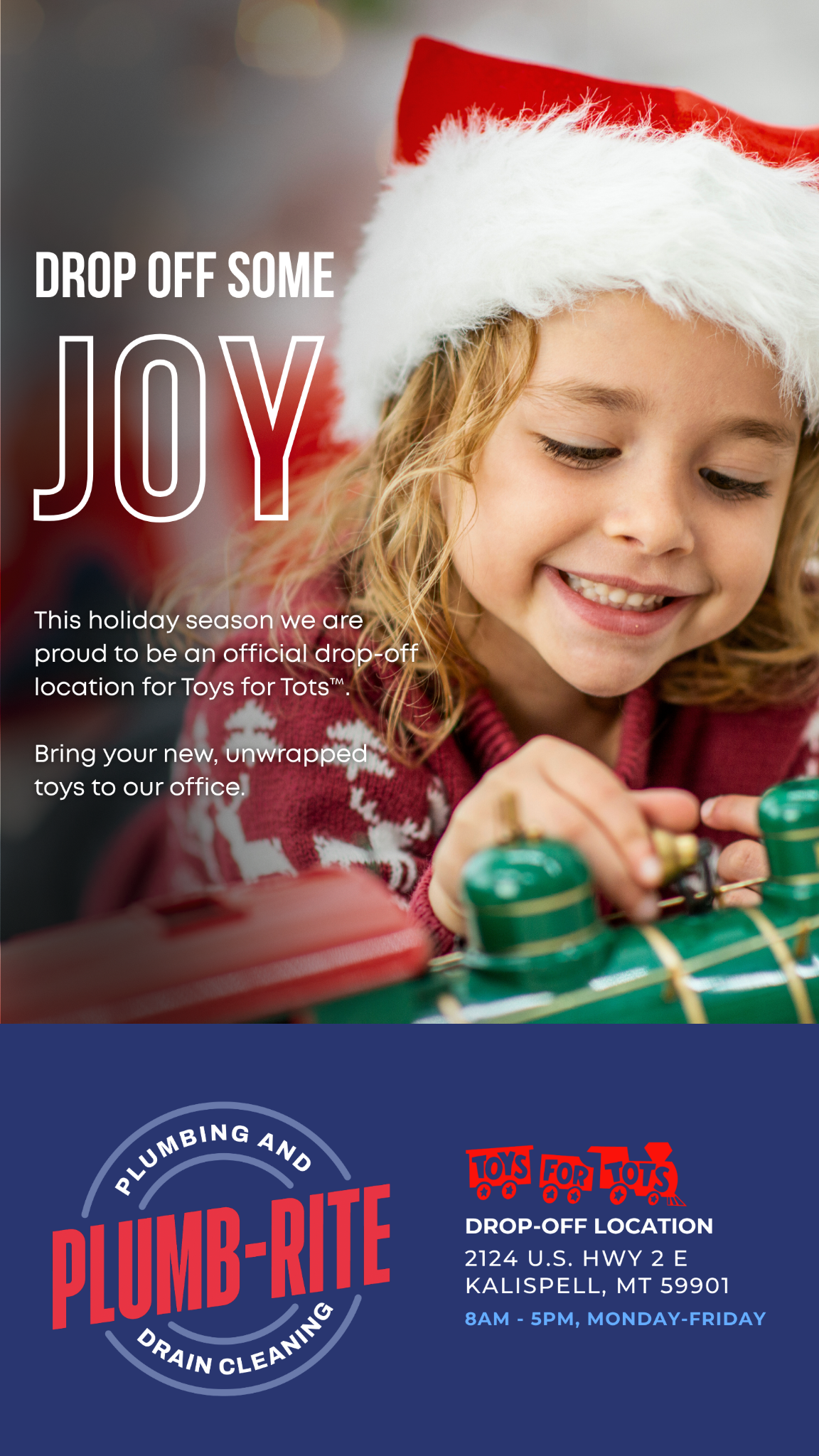 🎄 The season of giving is here, Flathead Valley! Plumb - Rite Plumbing is collecting Toys for Tots donations now through the holidays. Bring new, unwrapped toys and help us fill the box with joy...