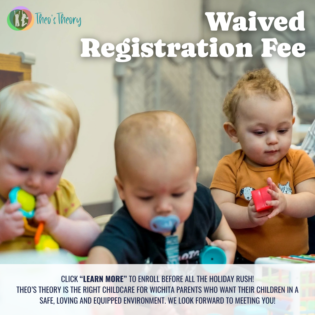 Enroll now and skip the registration fee! Theo’s Theory offers safe, loving care for your child right here in Wichita. ✨ Limited spots before the holidays, click “Learn More” to schedule your tour...
