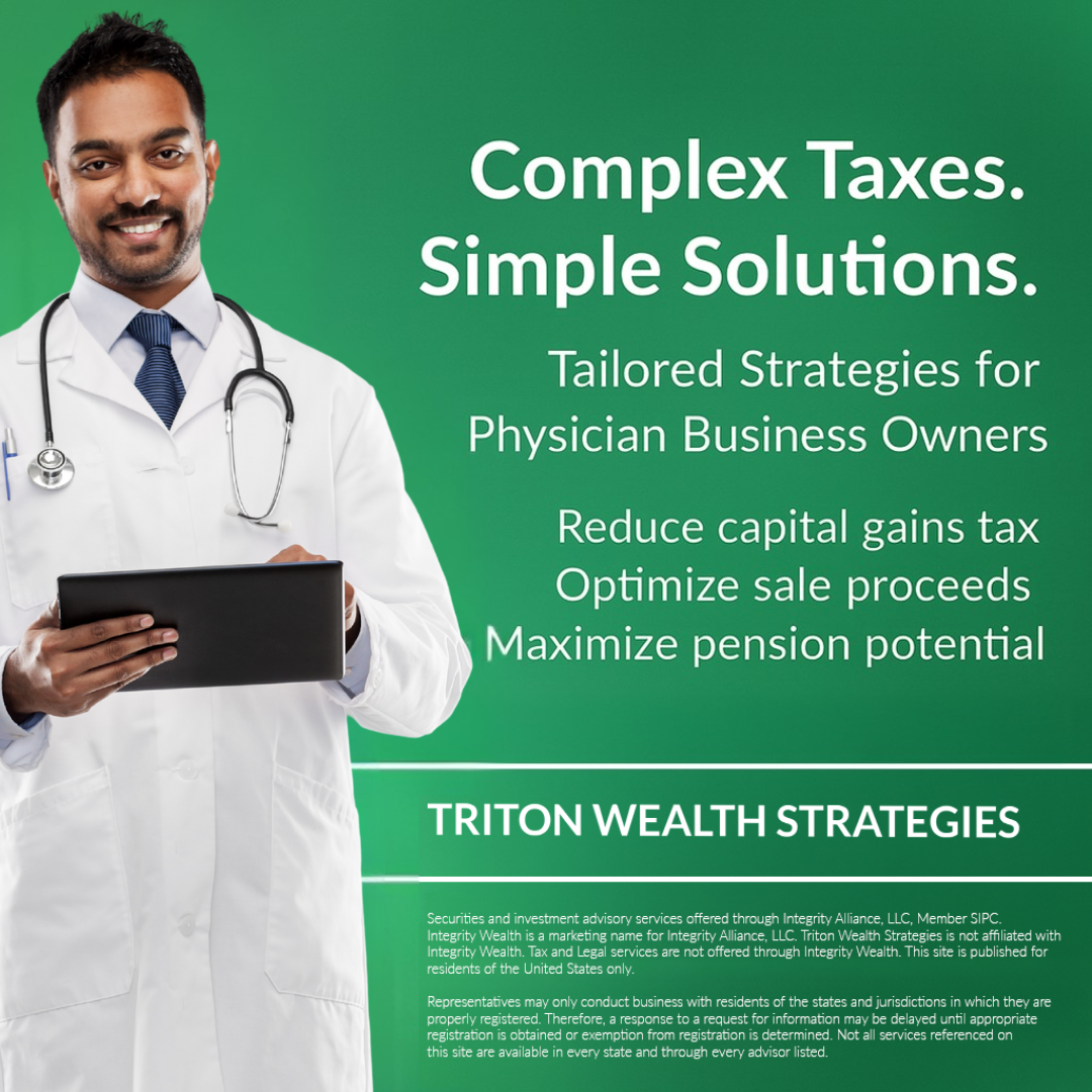 Are you a physician worried about taxes eating away at your retirement or business sale proceeds? Triton Wealth Strategies helps physicians like you keep more of what they earn — legally reducing...