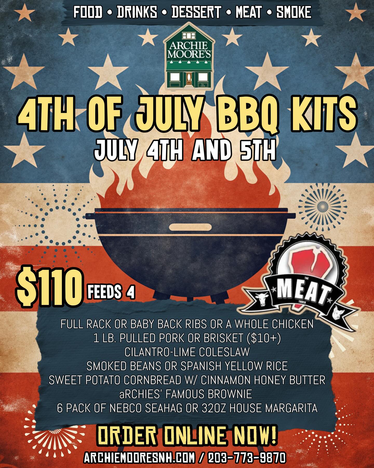 Hosting for the holiday? Lets us help you with that. Our famous BBQ packages are available July 4th and 5th so you can relax while@we help with the cooking! Order online now!