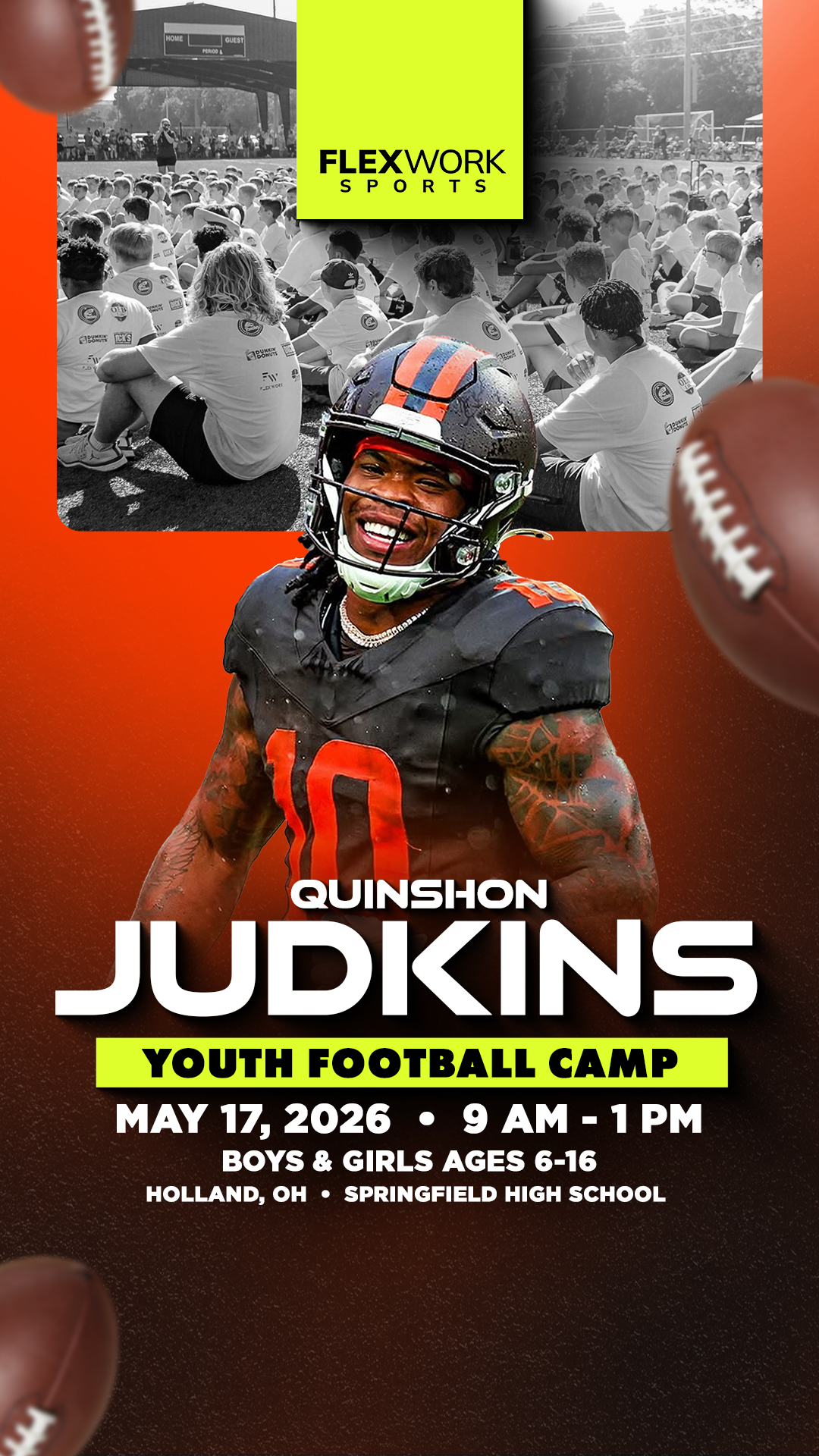Excited to announce Cleveland running back Quinshon Judkins will be in Holland to host a Youth Football Camp! The camp is for athletes ages 6-16 and will take place on Sunday, May 17th at Springfield...