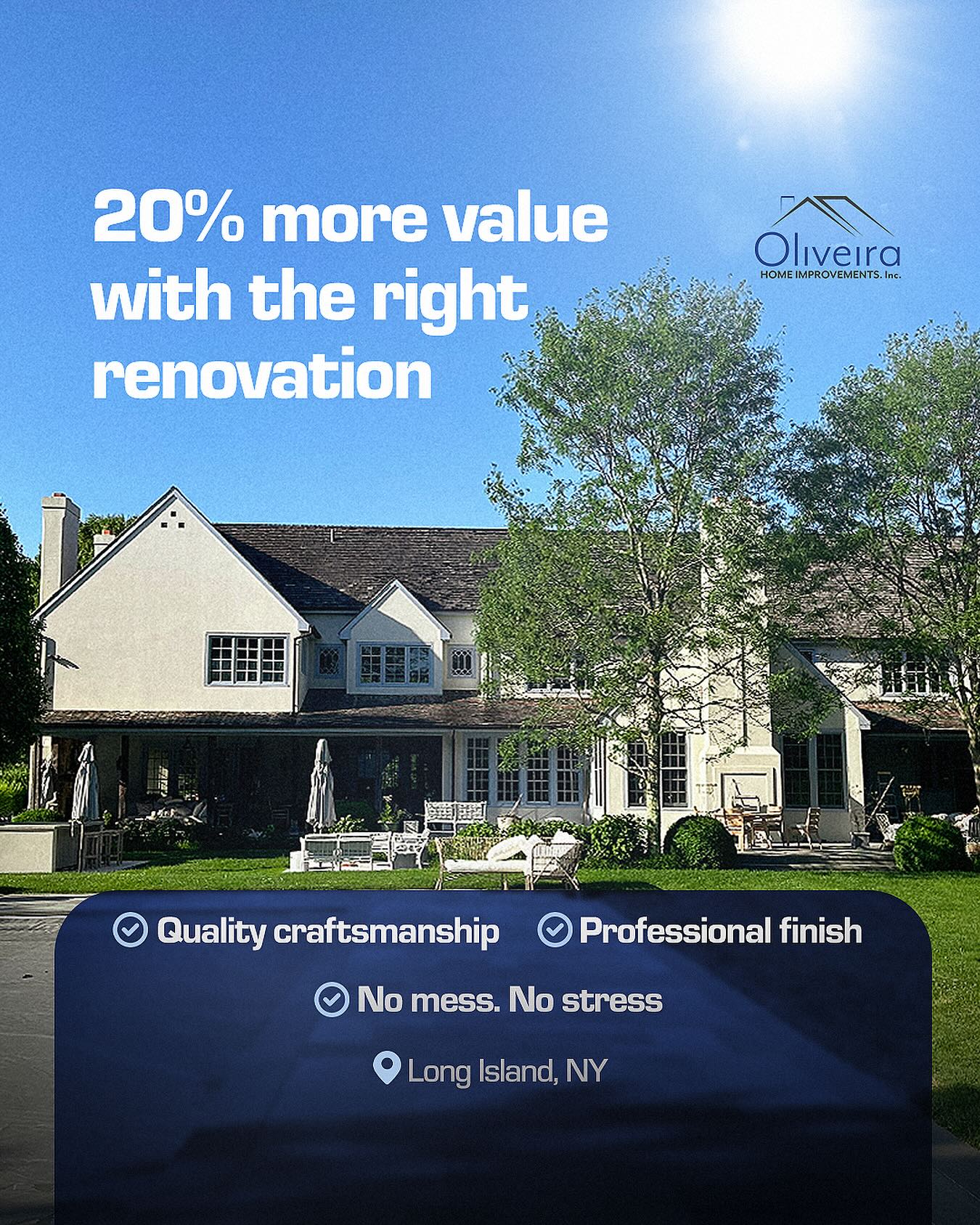 Looking to increase your home value in Long Island? 🏡 A high-quality home renovation can boost your property’s value by up to 20% !! At Oliveira Home Improvements, we specialize in ✔️ Home...