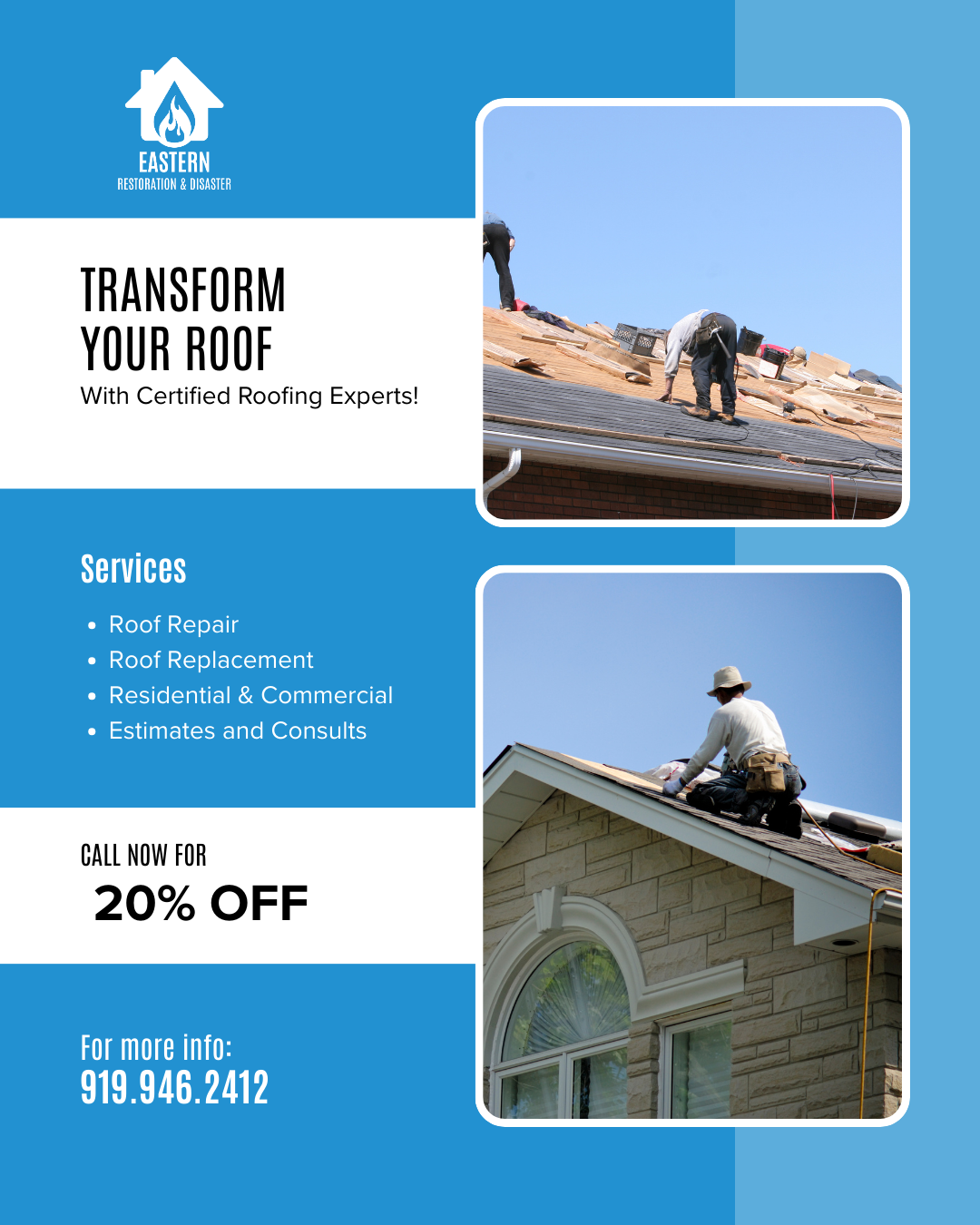 Eastern Restoration is a full-service roofing expert, specializing in residential and commercial roofing solutions in Raleigh and the surrounding areas.