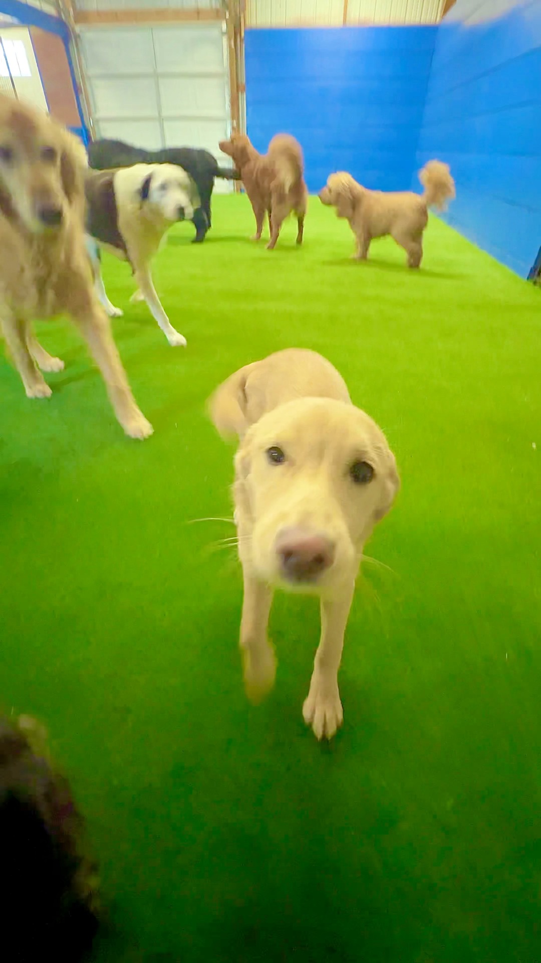 ❄️✨ Golden Paws dog daycare now has a fully turfed indoor playground—soft, warm, and perfect for nonstop fun. No cold. No snow. Just happy, tired pups at pickup. 🐾💚 Come join the pack!