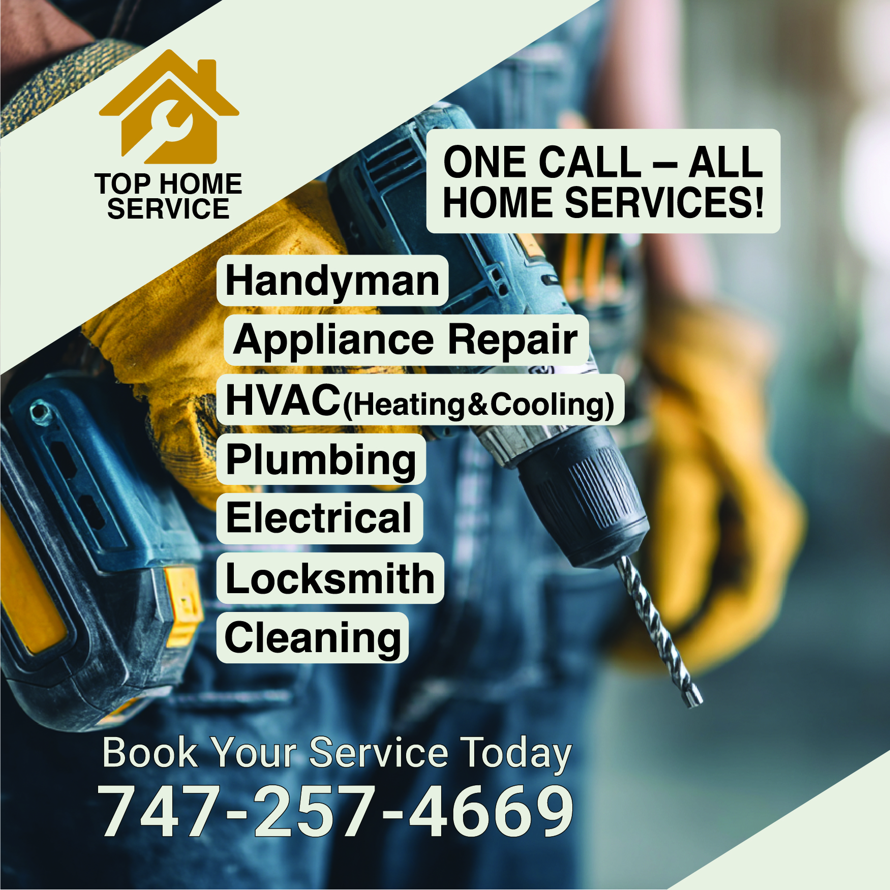 Handyman, Electrical, Plumbing, Appliance Repair, Locksmith, Cleaning, HVAC - all in one place.