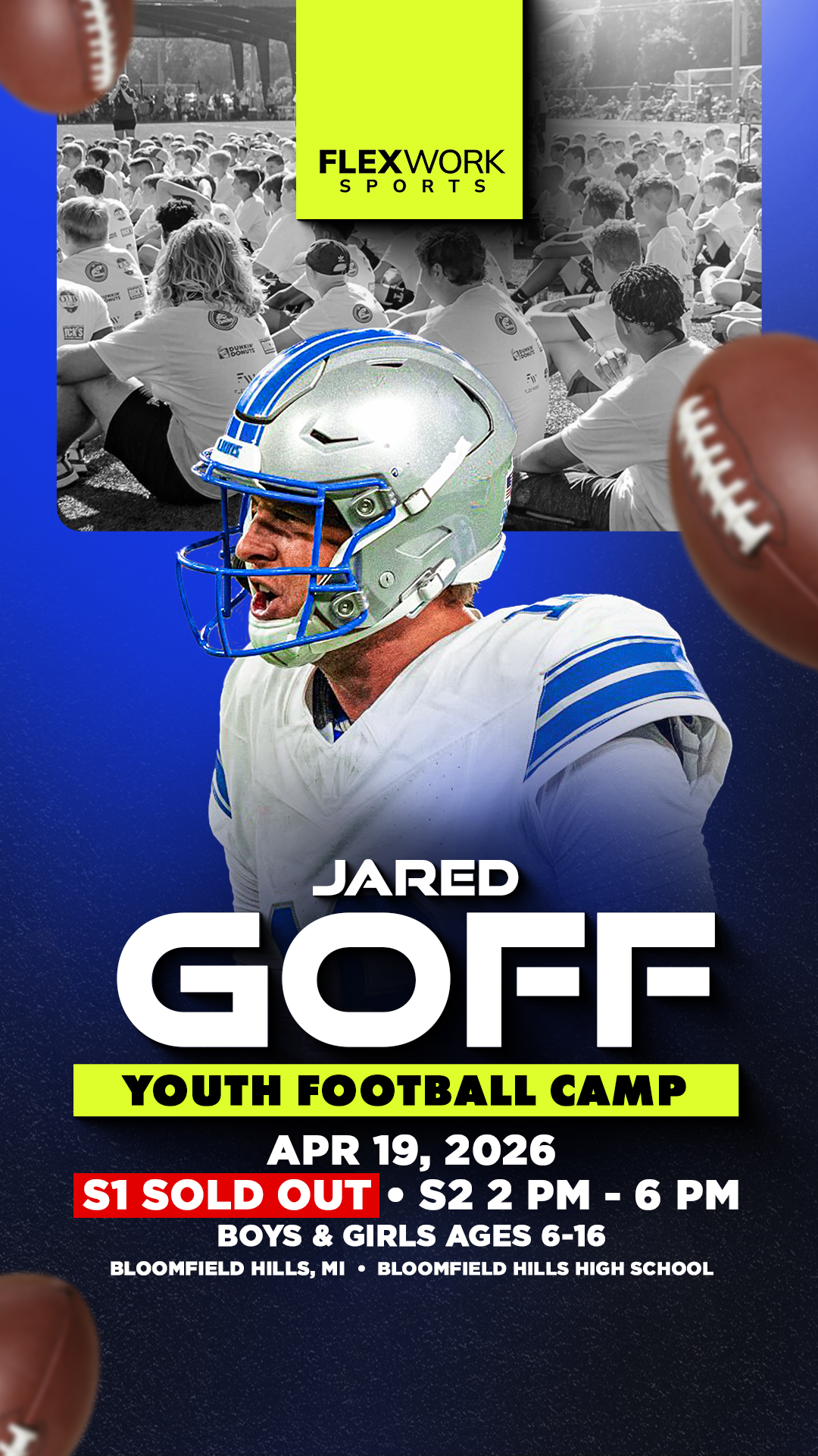 SECOND SESSION ADDED! Excited to announce Detroit quarterback Jared Goff will be in Bloomfield Hills to host a Youth Football Camp! The camp is for boys ages 6-16 and will take place on Sunday,...