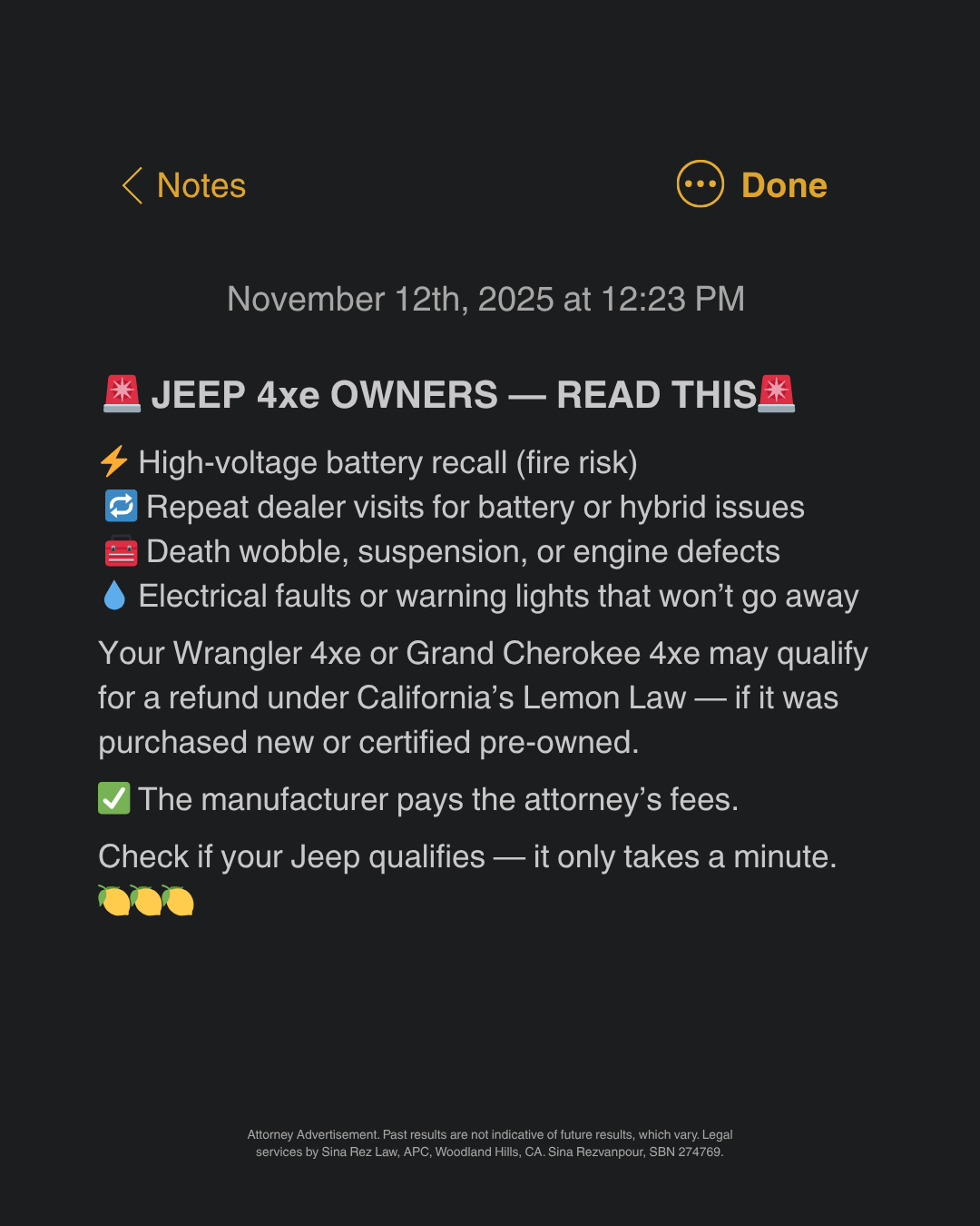⚠️ Jeep just issued another recall for the same high-voltage battery defect in Wrangler and Grand Cherokee 4xe models. Some owners were told not to park in garages. If your 2020–2026 4xe has been...