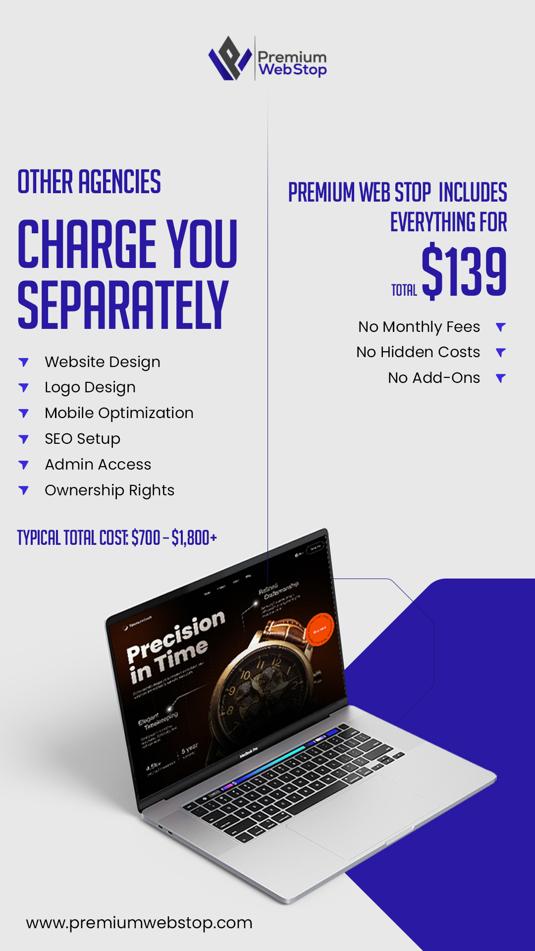 Most agencies don’t tell you this upfront… They charge you piece by piece until your “simple website” becomes a $1,000+ headache. Logo? Extra. Mobile version? Extra. SEO setup? Extra. Admin access?...