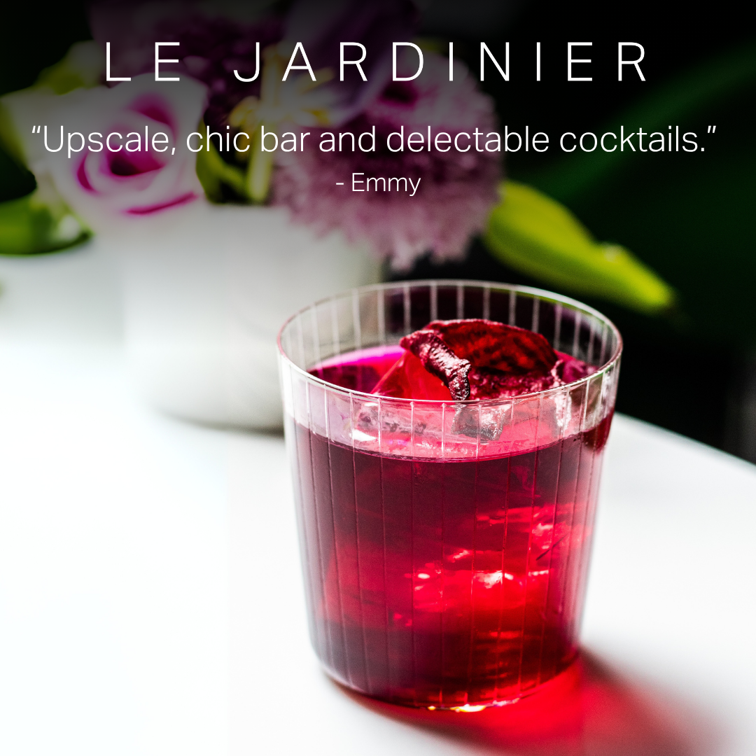 Embrace the warm weather with a refreshing spritz or house cocktail crafted by our talented mixologists at Le Jardinier.