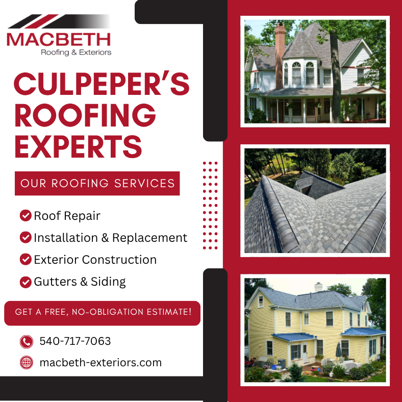 Don’t let a leaking or aging roof compromise your home. MacBeth Roofing & Exteriors serves Culpeper and surrounding areas with high-quality workmanship, transparency, and a stress-free process from...