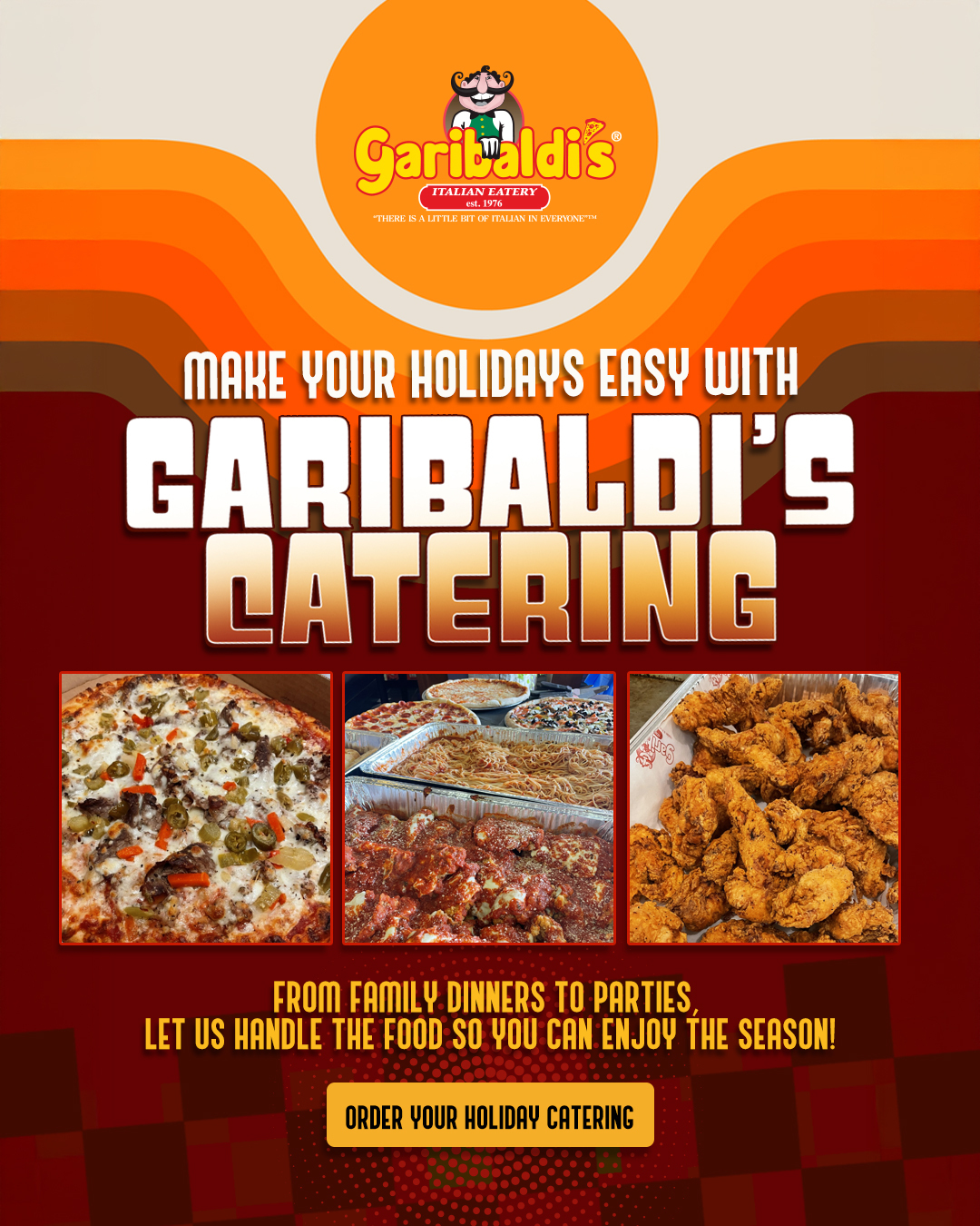 Celebrate the season the Italian way with Garibaldi’s Holiday Catering. Enjoy delicious meals, generous portions, and no kitchen cleanup, just quality time with the people you love. Plan your...