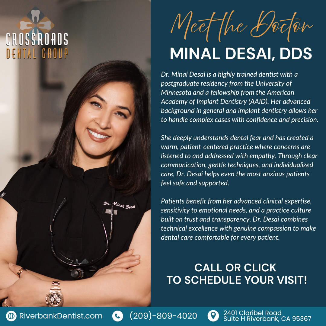 Discover the caring, patient-focused approach of Dr. Minal Desai. From routine care to advanced dentistry, weβre here to help you feel comfortable and confident in your smile. Call 209-809-4020 or...