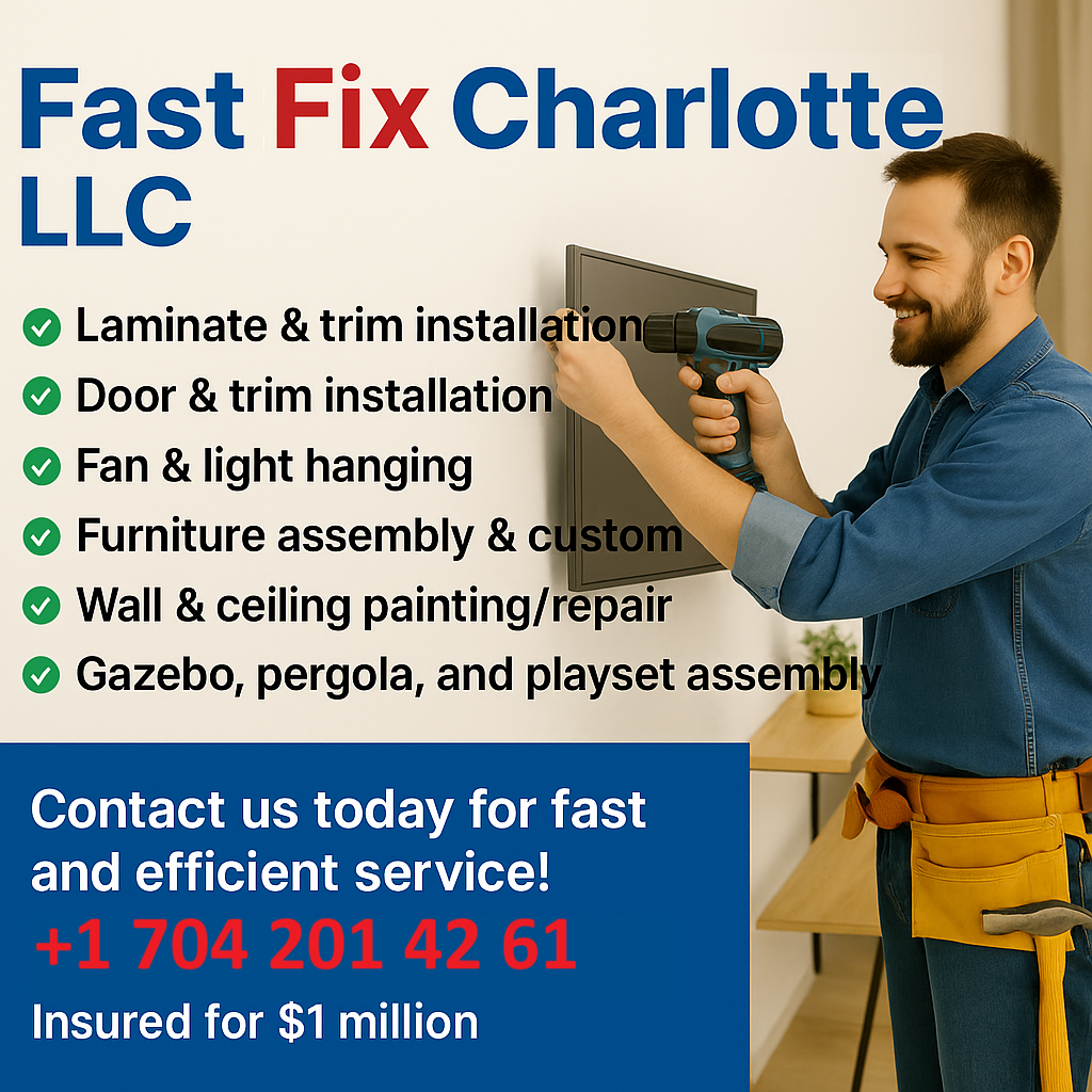 ✅ Laminate & trim installation ✅ Door & trim installation ✅ TV’s, fan & light hanging ✅ Furniture assembly & custom ✅ Wall & ceiling painting/repair ✅ Gazebo, pergola, and playset assembly 📞 Contact...