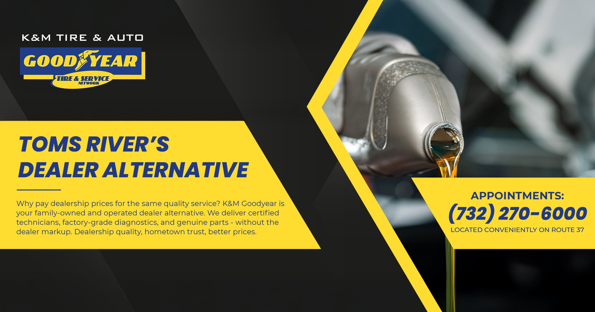At K&M Goodyear, you get dealership-quality service without the dealership hassle. Our certified technicians use the same diagnostic tools and genuine parts the dealers do, but you'll actually...