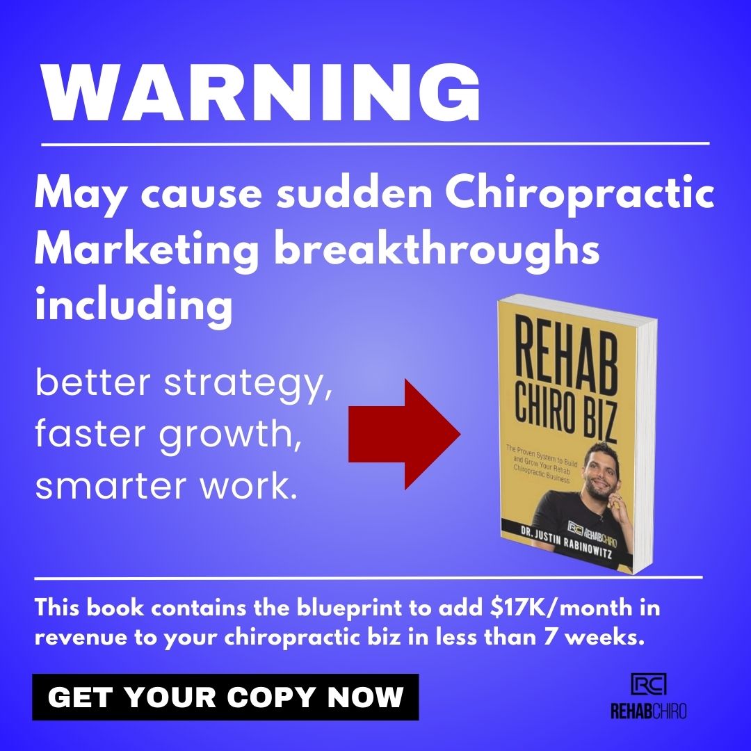 Chiro business owners, adding $17K/mo in revenue to your biz is typical when you use our book to grow. Rehab Chiro Biz is a step-by-step blueprint built to take chiropractic business owners from...
