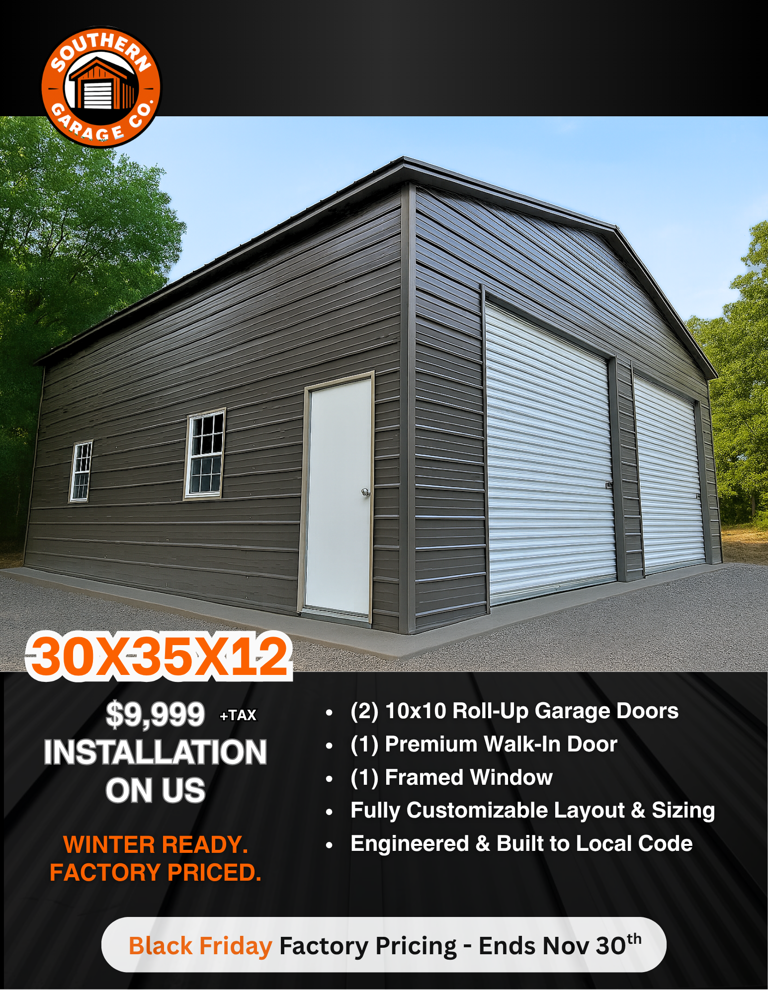 Say goodbye to online shopping uncertainty! 🚫 Buying a steel garage shouldn't be a gamble. We treat every customer like family, with no hidden fees, pushy upsells, or dealer tricks. This 30x35x12...