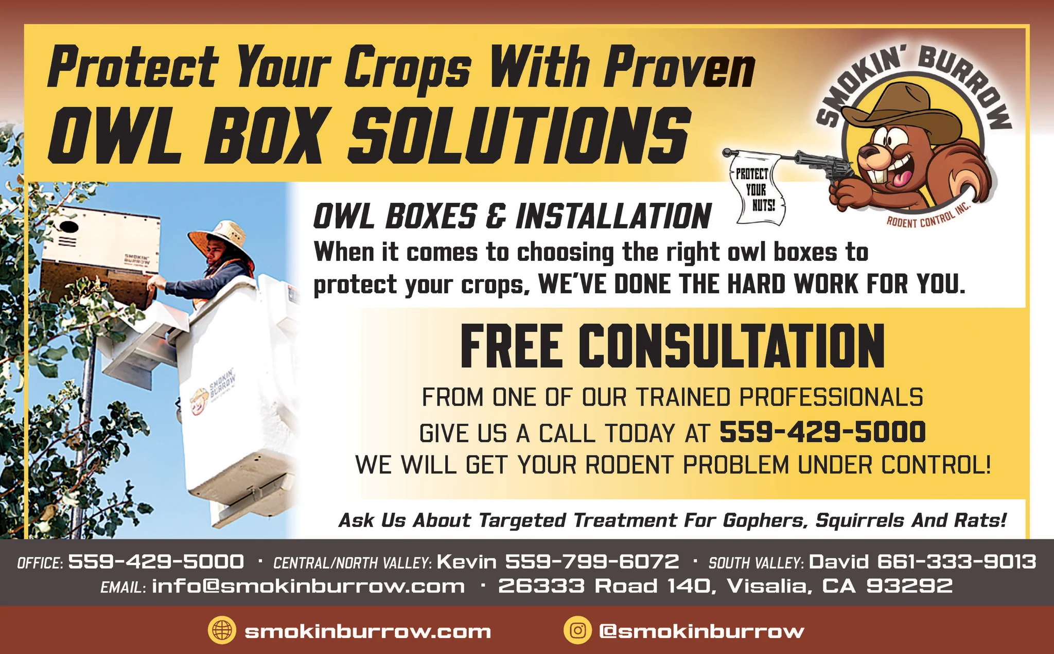 Protect Your Crops with Proven Owl Box Solutions Smokin’ Burrow provides high-quality owl boxes and professional installation to help growers control rodents naturally — before they become a costly...