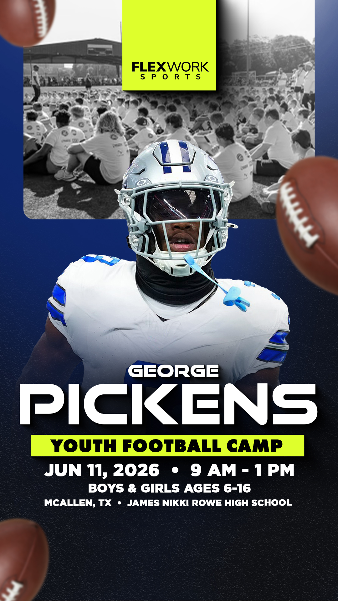 Excited to announce George Pickens will be in McAllen to host a youth football camp! Athletes ages 6-16 will šŸˆ Learn skills from Pickens šŸ“ø Get a pic with the star šŸ‘• Get swag Join us on Thursday,...