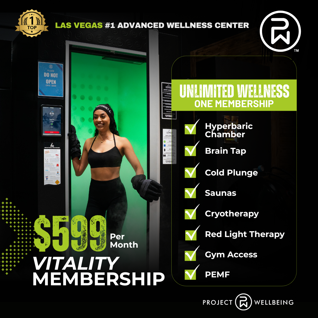 Welcome to Project Wellbeing — Las Vegas’ #1 Advanced Wellness Center. Whether you’re training hard, recovering smarter, or just want to feel your absolute best — our Vitality Membership gives you...